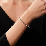Шикарный браслет, удобно одевается, он гибкий, внутри с пружиной. Очень хорошо блестит за счёт граней! Хорошо сочетается с другими любыми украшениям за счёт дизайна! Всем рекомендую!