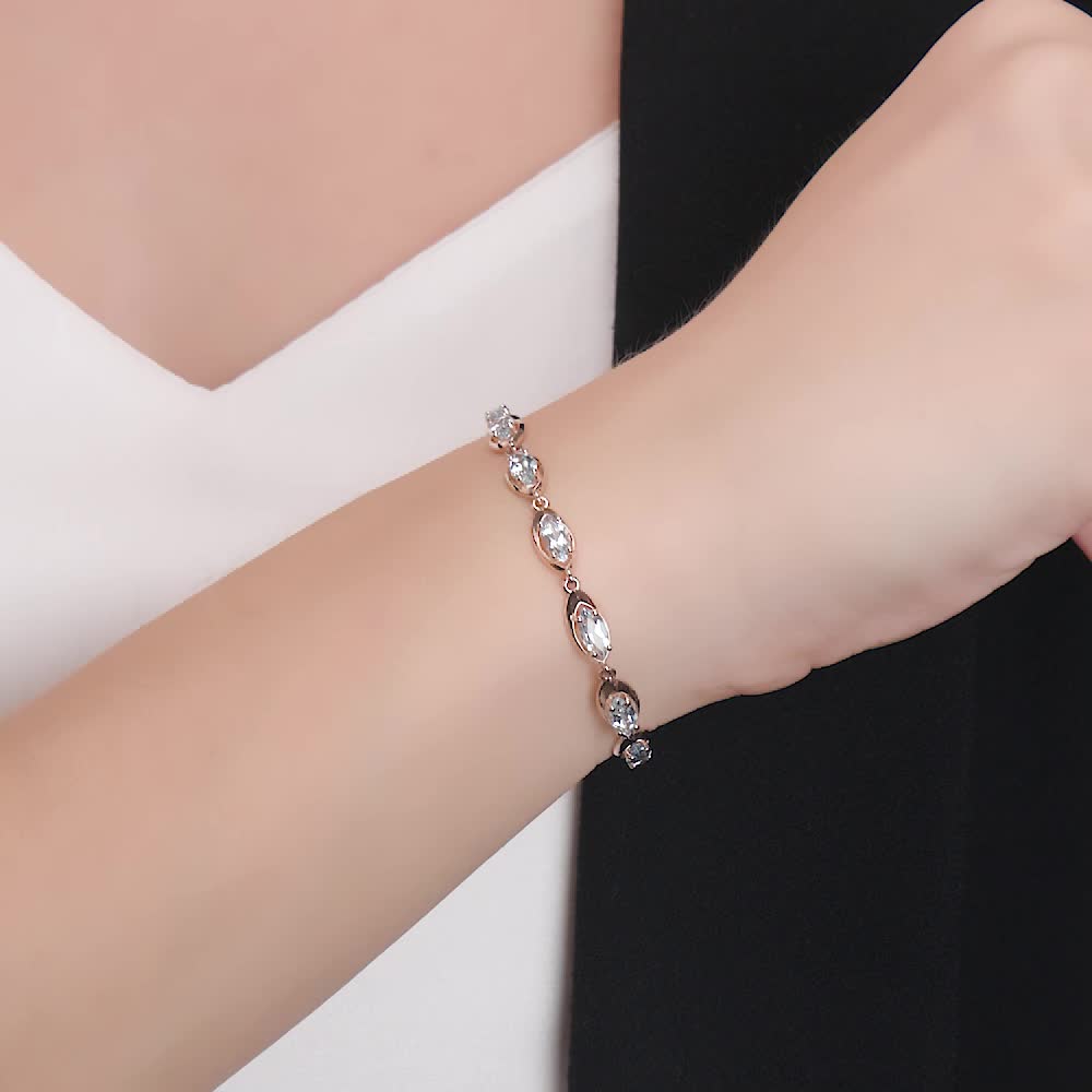 В редких случаях характеристики украшения или упаковка могут иметь отличия от представленных на фото или в описании.Браслет с 9 топазами, 3.83 карат, тип огранки Б;