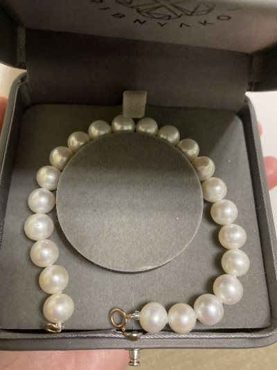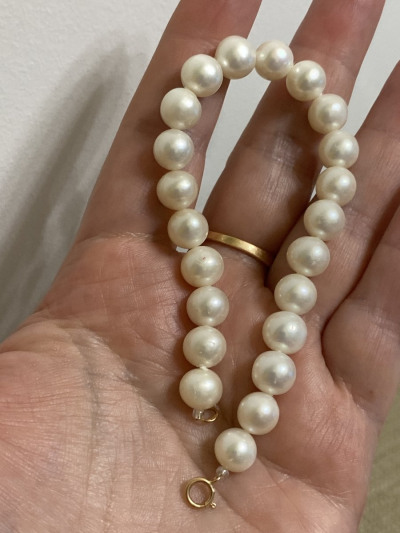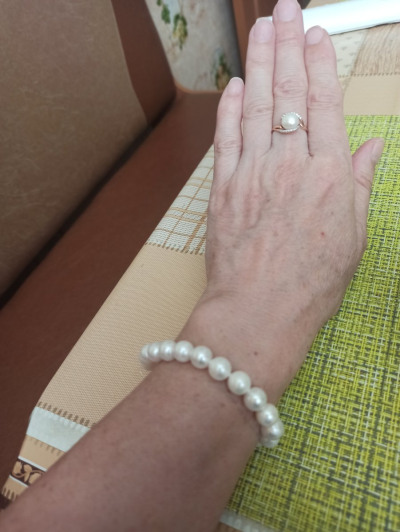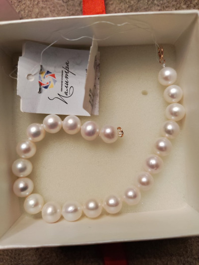 Отличный жемчужный браслет. Давно хотела. Застежка-красное золота 585 пробы, минус-маленькая и очень неудобная, невозможно самой застегнуть, нужна чья-то помощь.