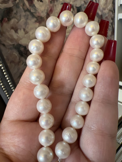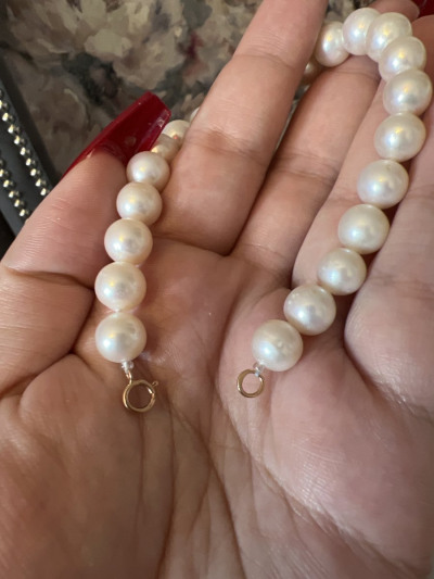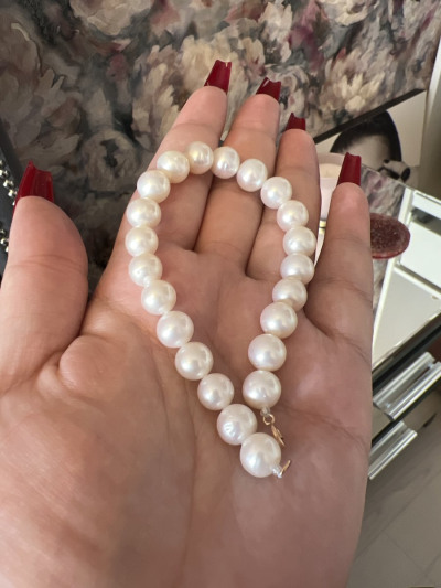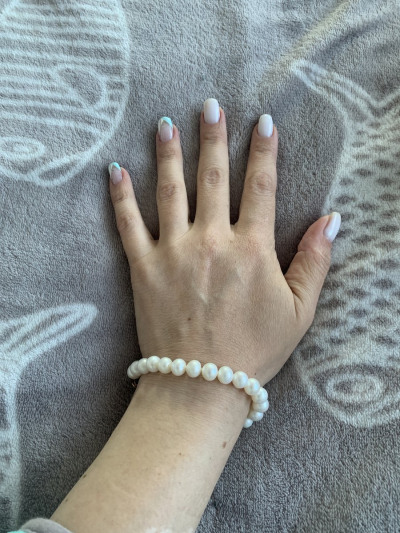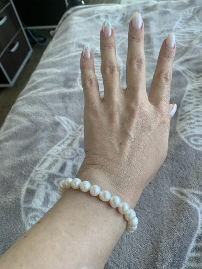 Симпатичный браслетик, жемчужины среднего размера, белоснежные, размер 19.5 на тонкое запястье немного свободный. Рекомендую к покупке👍