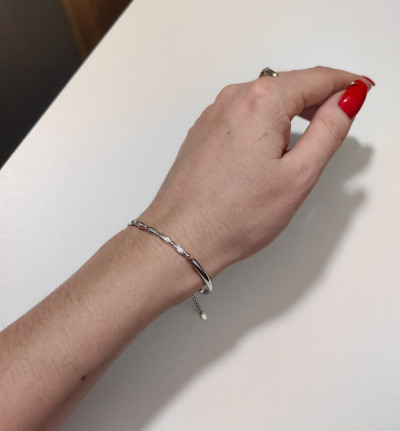 Не люблю жесткие браслеты, потому что они всегда некрасиво и некомфортно ложатся на руку, но данный браслет отличный! Он абсолютно не чувствуется на руке и сидит по форме запястья, брала для комплекта к другому, однозначно рекомендую 🥰