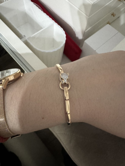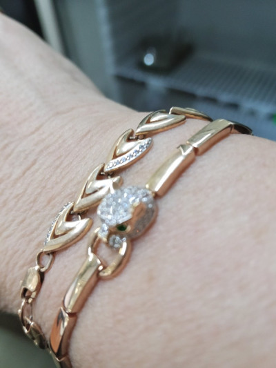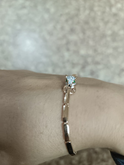 Браслет смотрится очень эффектно,ягуар переливается, глазки с зелёными камнями.Советую к покупки однозначно.