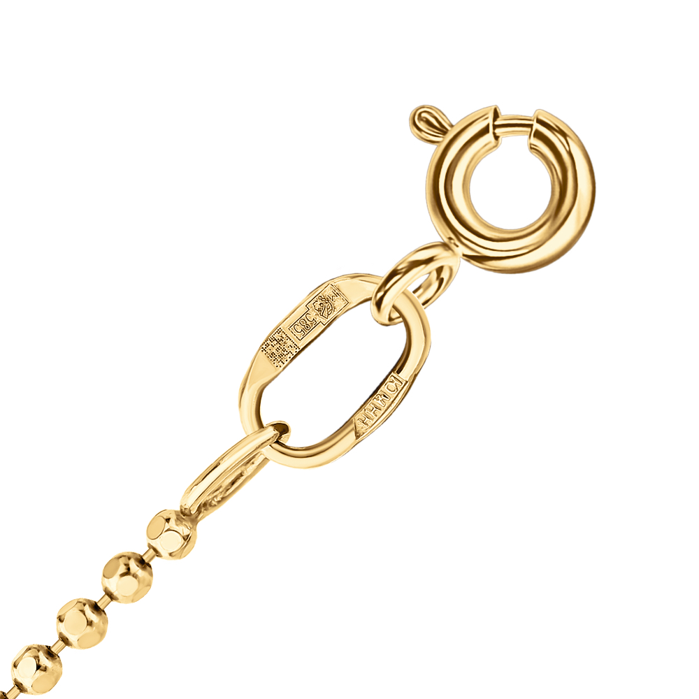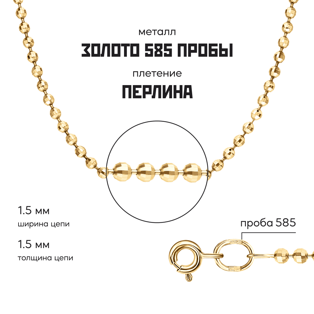 Цепочка с плетением "Перлина" - украшение подчеркивающее вашу женственность. «Pearl» с английского – «жемчужина». Отсюда и название плетения – "Перлина". Цепочка состоит из особых звеньев – шариков (круглых, продолговатых) расположенных на золотой проволоке. Цепочка "Перлина" может быть как самодостаточным украшением, так и носиться с подвесками и кулонами.