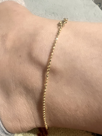 Золотой браслет купила на ногу . Прошел проверку морем. На солнышке переливался и блестел очень красиво. Классный.