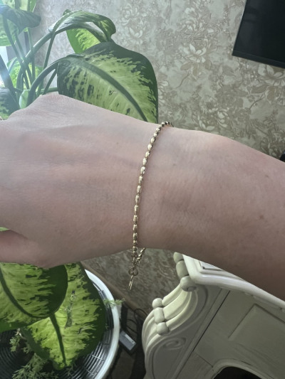 Браслет был куплен в комлект к цепочке. Не понимала такое плетение пока не померяла, очень нарядно смотрится как на шее так и на руке за счет сверкающих граней. Не массивный но достаточно заметный. Можно носить как самостоятельно, так и в паре.