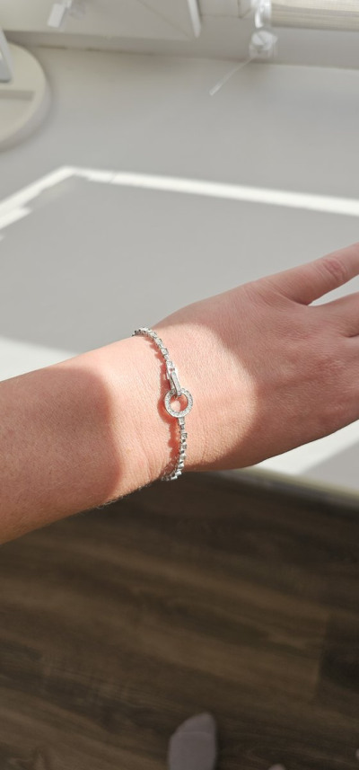 Браслет очень понравился. Смотрится на руке деликатно и элегантно. Как говорится, ничего лишнего, но очень заметно.