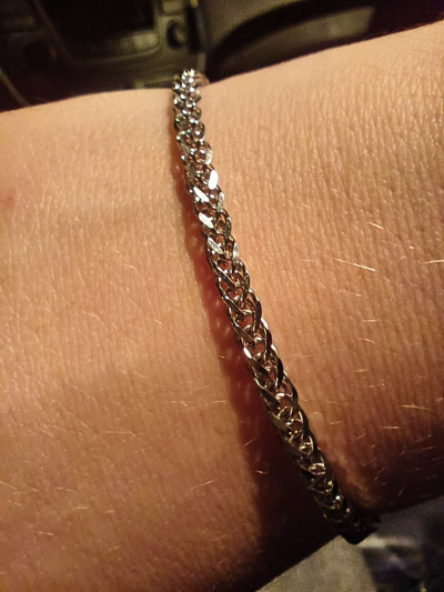Очень понравился браслетик, смотрится стильно. Плетение колос, смотрится объемно. Покупкой довольна. Рекомендую к покупке.