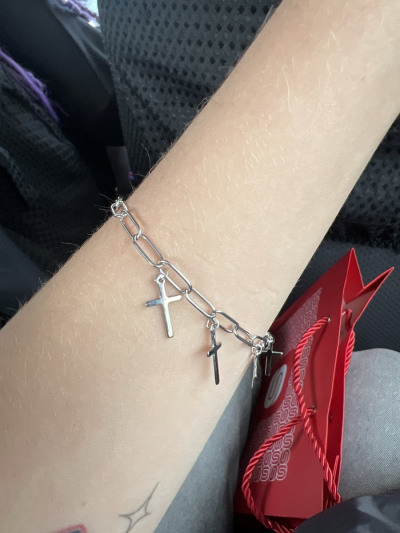 НЕОЖИДАЛА что браслет так сильно понравится,пришел красиво упакованный,впрочем как и всегда у санлайт,и что самое удивительное сам браслет подвески крестики такие как на последнем отзыве по длиннее чем заявленные на видео и фото продавца,но мне кажется этот даже смотрится намного круче и эффектнее!Вообщем молодцы,браслет чудесный,будет защищать от нечисти )),крестики сверкают серебром,приятный и комфортный по ощущениям,качественно сделан,до этого приобретали цепочку с таким видом плетения в SL и она одна из моих любимых цепочек,спасибо большое Санлайт 🫶🥰