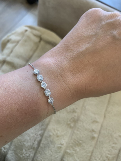Купил отличнейший браслет Жене на сорокнадцать лет. Глаза брильянтами блестят, Как тридцать лет тому назад. Рекомендую мужикам - БалУйте дам.