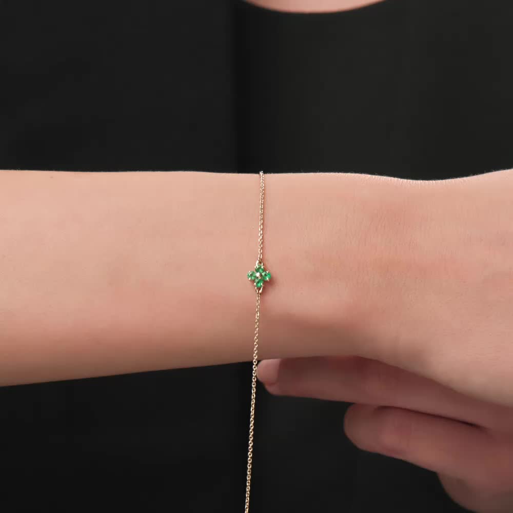 Браслет с 4 изумрудами природными, 0.2 карат, цвет 3, чистота 3, тип огранки В;