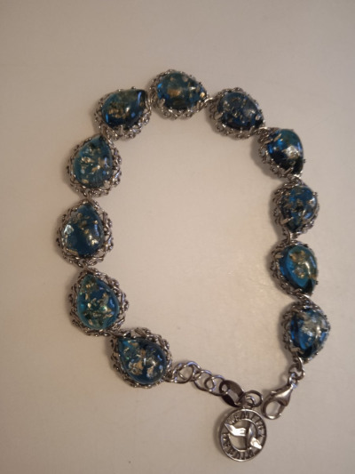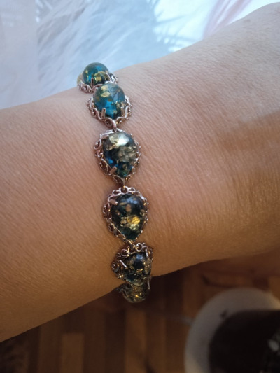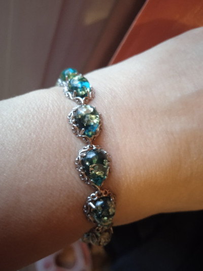 Очень красивый женственный браслет, переливается, то зеленоватый, то цвета морской волны. Производитель г. Калининград.