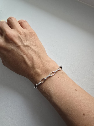 Браслет, очень красивый 👍 , стильно от белого золота не отличишь смотрится роскошно, дорого элегантно 👍, спасибо продавцу рекомендую