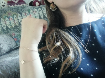 Очень красивый браслет, тонкий, изящный. Собрали свой набор из сережек и подвески клевер.
