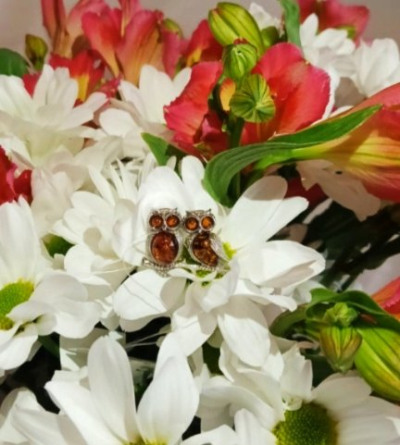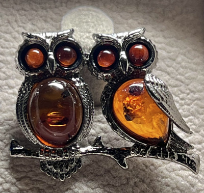 Милый дизайн... Серебряные совы в янтаре..,- великолепное сочетание...