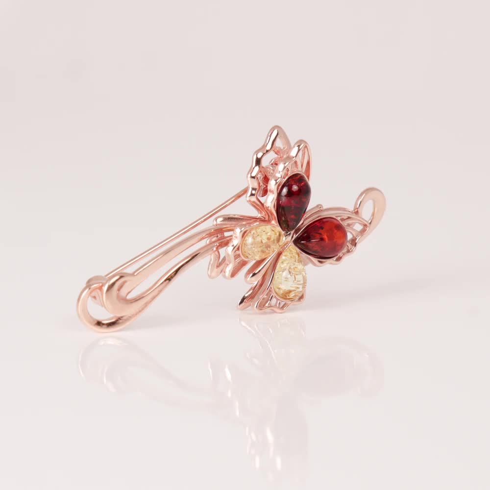 Брошь с 4 янтарями микс;