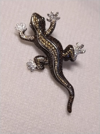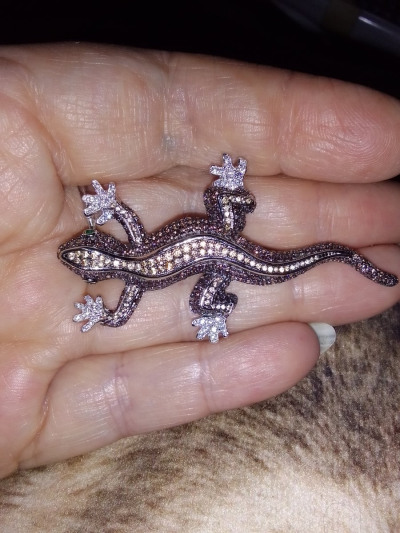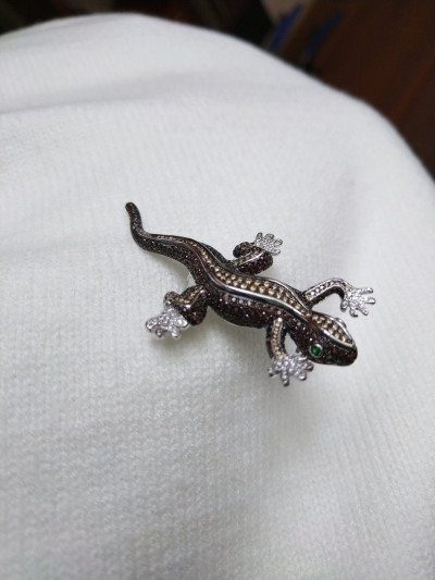 Красивая, компактная, как живая ящерка. Качество исполнения на высоте. Застежка-булавка надёжная, не так-то просто было её расстегнуть. Помогла девушка-консультант. Все камни на месте, красиво и благородно переливаютя. Брошь достойная.