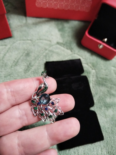 Купила на подарок. Брошь превзошла мои ожидания! Она прекрасна!Камни очень красиво подчеркивают красоту птицы!