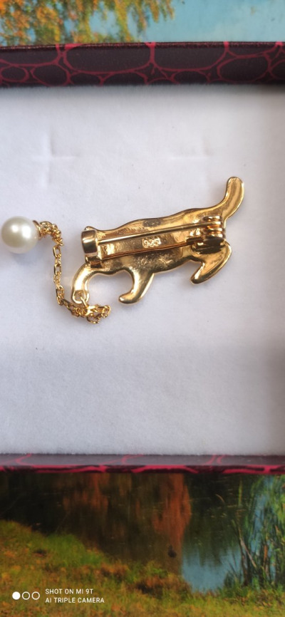 Очень люблю котов, можно сказать кошатница, брошь очень понравилась, мячик-жемчуг двигается на цепочке. Прикольно