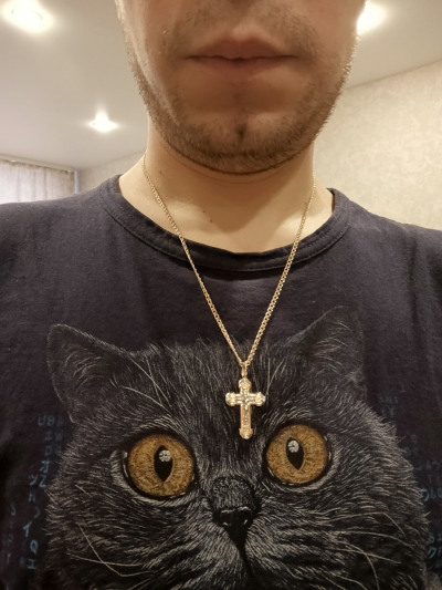 Подарила мужу золотой крестик с цепочкой, очень достойно выглядит. Муж Счастлив ❤️