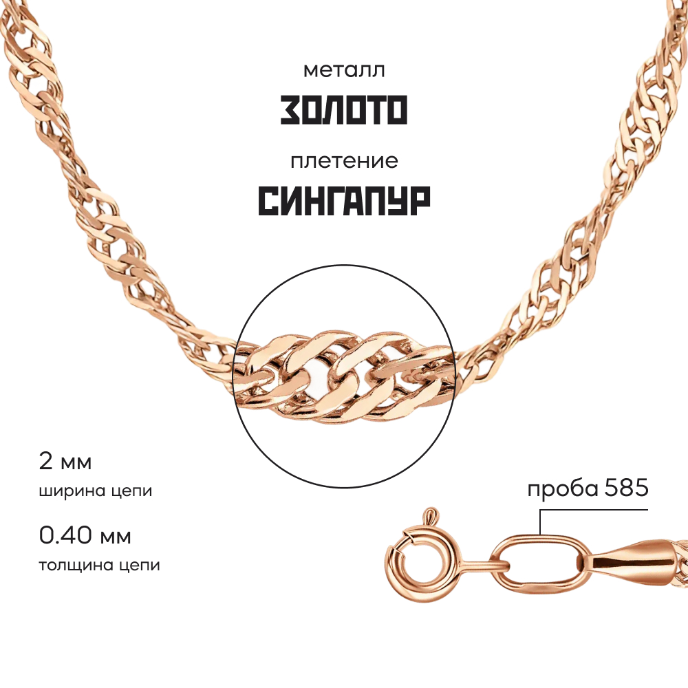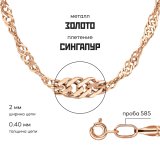 "Сингапур" - плетение на основе двойного панцирного плетения. Звенья в цепи соединены в сложную спиралевидную структуру, обеспечивая потрясающий блеск от солнечных лучей под разным углом.