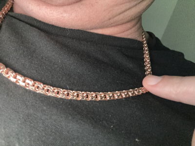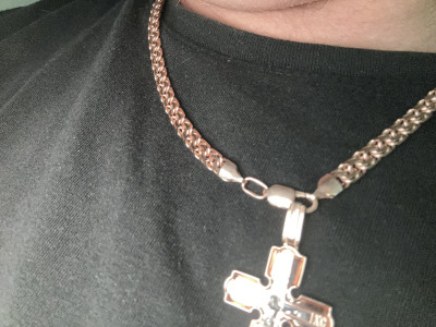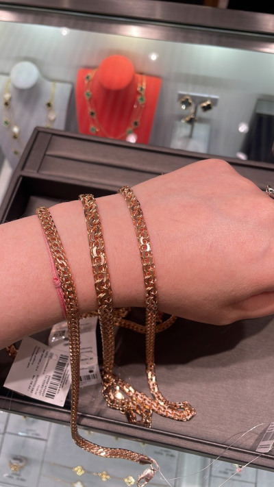 Полновесная цепь, качественное крепление, хорошо изготовлено. Отдельное спасибо сотрудницам салона за поиск решения, долго не могла выбрать между двумя вариантами, предложили третий, который идеально подошел