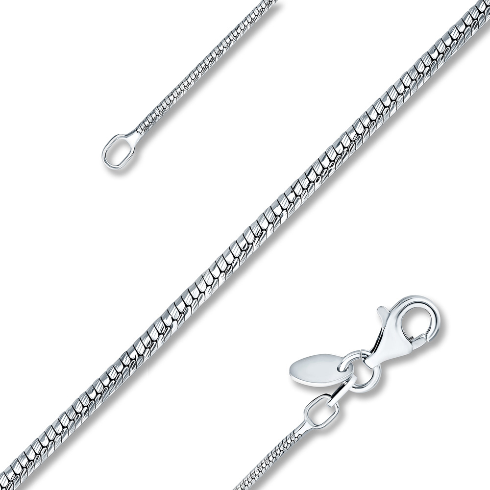 Цепочка с плетением "Снейк" – универсальное украшение, которое подойдет на все случаи жизни. Ювелирный аксессуар напоминает скрученную туго веревку, состоящую из плотно соединенных элементов одной плоскости. Основные компоненты изделия – кольца, замок и звенья. Чередование и определенное расположение элементов создают уникальный вид плетения.