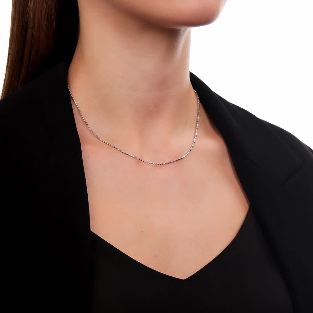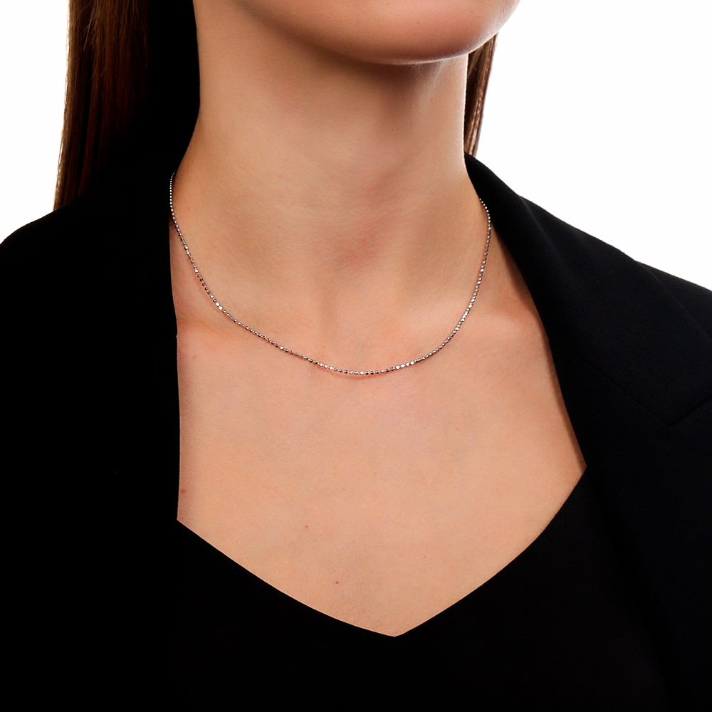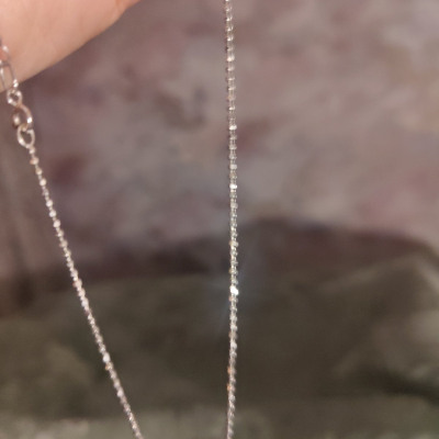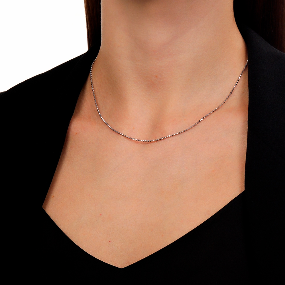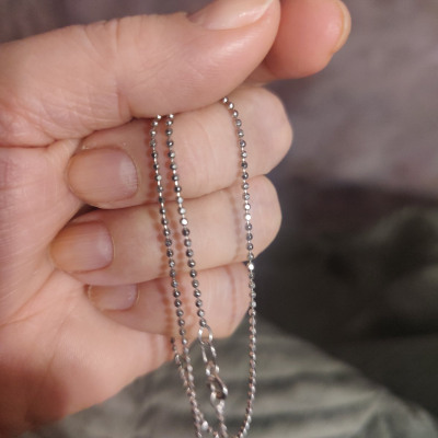 Подбирала цепочку к браслету, чтобы шарики были одного диаметра. Дополнительно приобрела крест из платины. Цепочка сверкает и переливается за счет граней. Смотрится необычно.