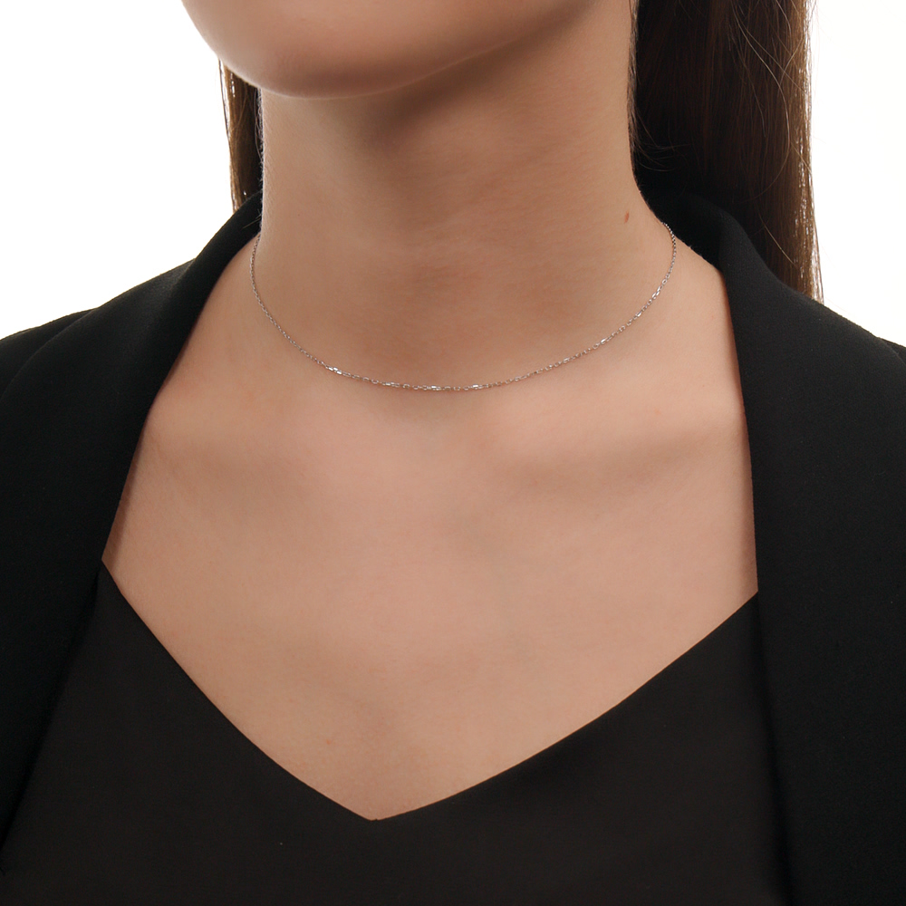 Тоненькая, не длинная цепочка. Нежная. Смотрится отлично. Такую и хотела.