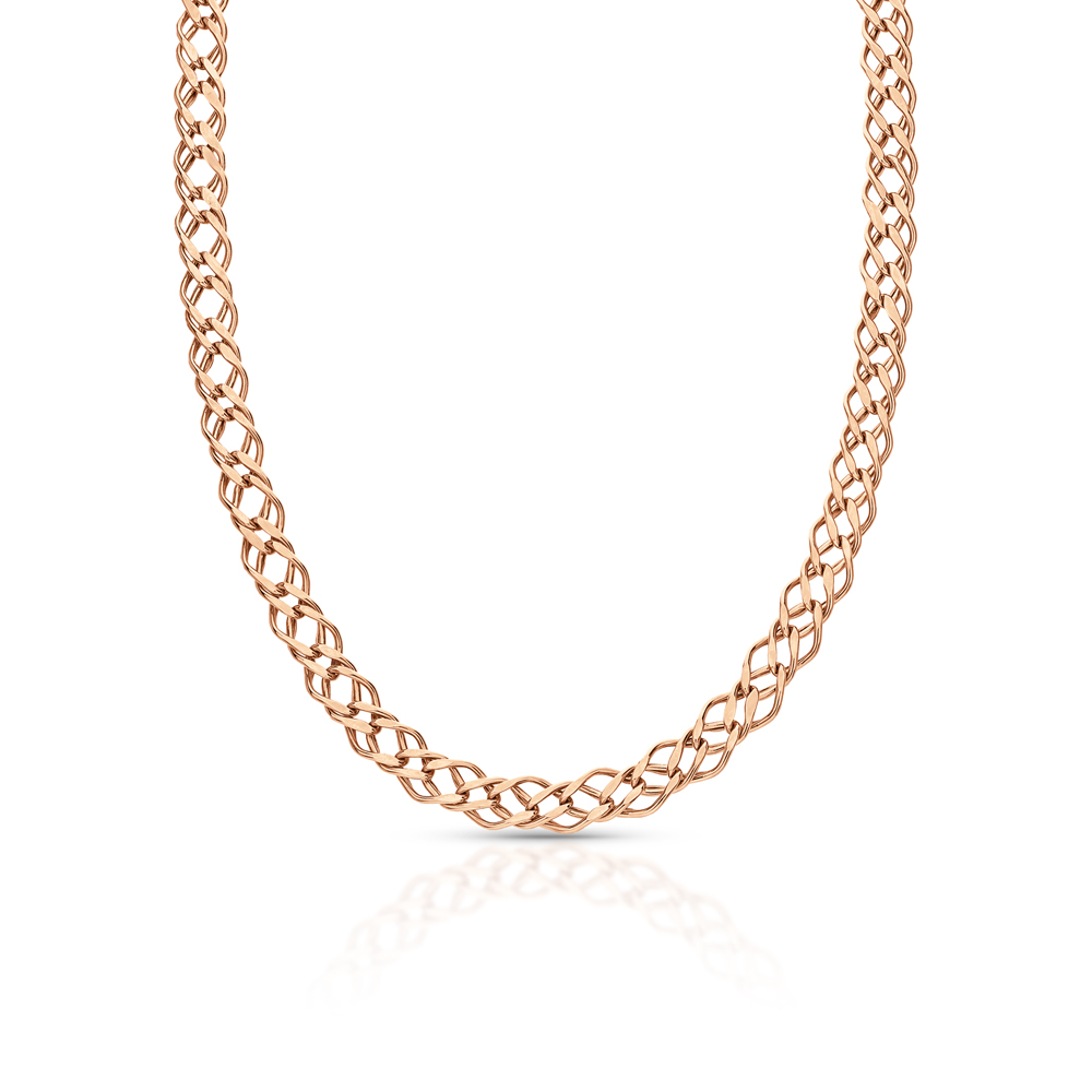За счёт сложной геометрии плетение "Ромб" выглядит объемно и по-настоящему изысканно. Свет необычным образом отражается от звеньев. Цепочки с ромбом в основе плетения очень популярны и пользуются спросом. В этом случае каждое из звеньев представляет собой одноимённую геометрическую фигуру. Одинаковые противоположные углы или квадраты вытянутой формы составляют прочную конструкцию. Цепочка надолго сохраняет свой первоначальный праздничный блеск и красоту. Это одна из классических форм плетений, но у неё есть несколько разновидностей.