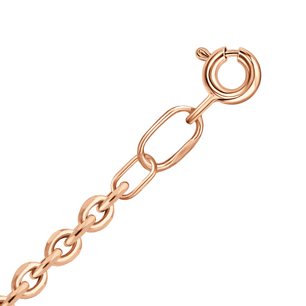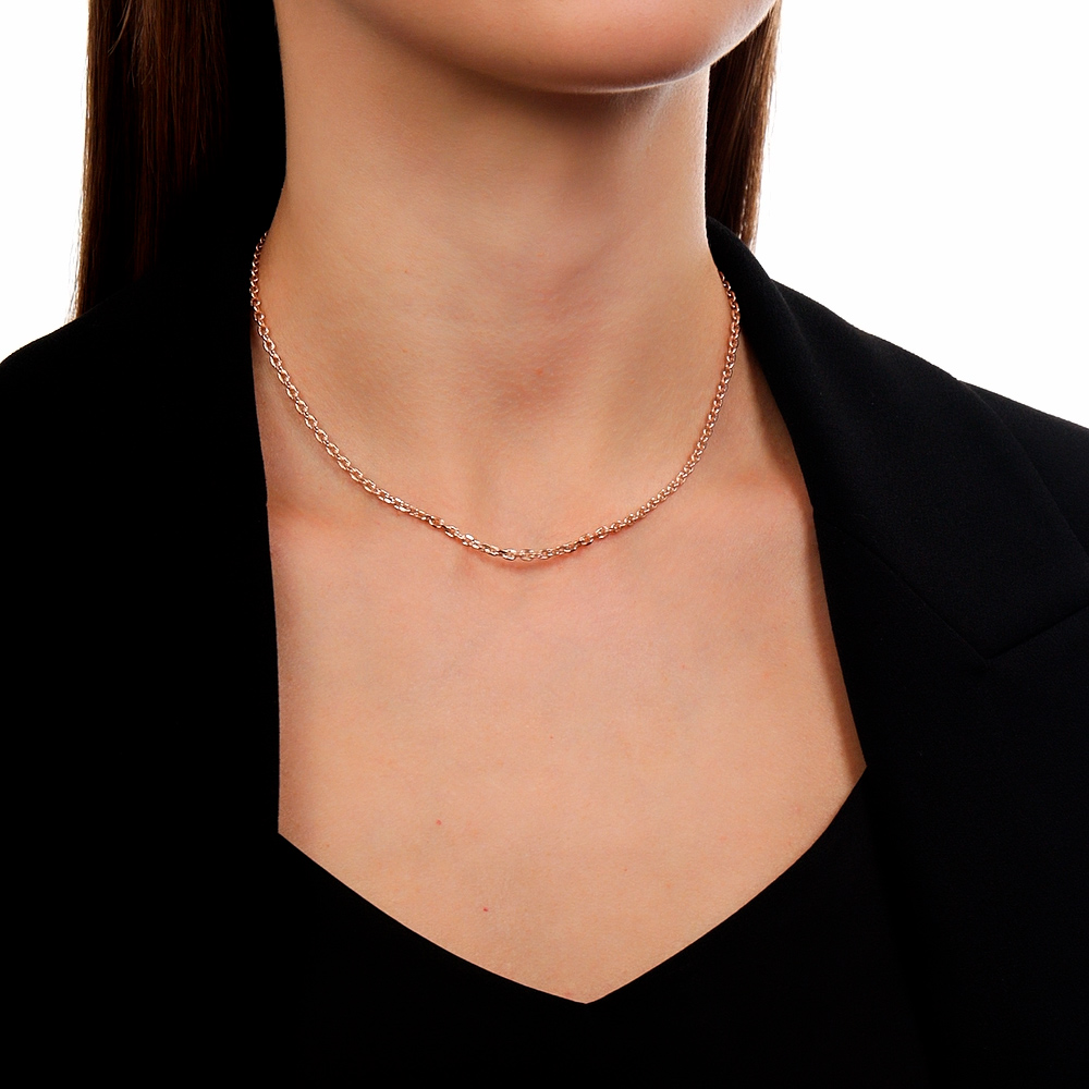 Якорное плетение - настолько надежное, что можно "вешать якорь". Звенья расположены под прямым углом друг к другу, от чего цепь получается объемной и крепкой. Плетение универсально, подходит и женщинам, и мужчинам. Классическая якорная цепь состоит из звеньев продолговатой формы с закругленными концами. Для усиления блеска края обрабатывают алмазной гранью.