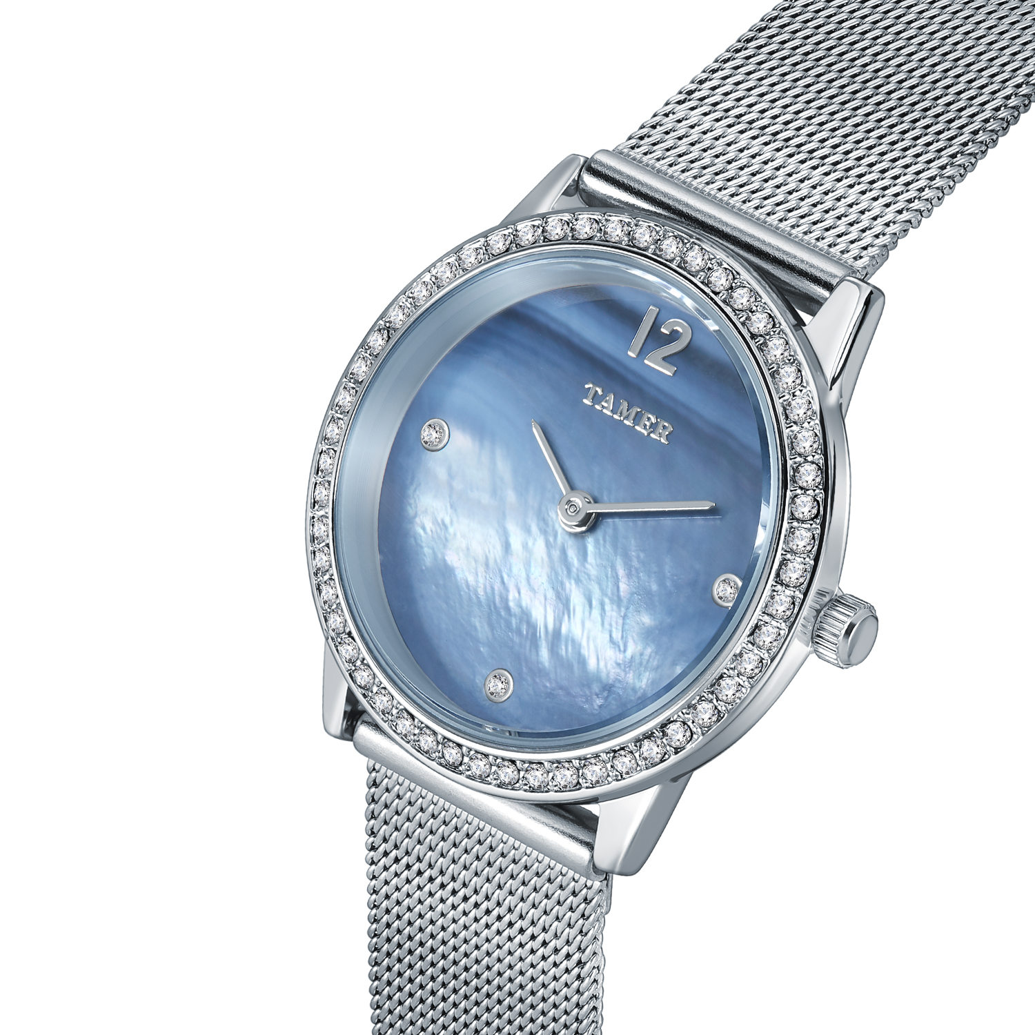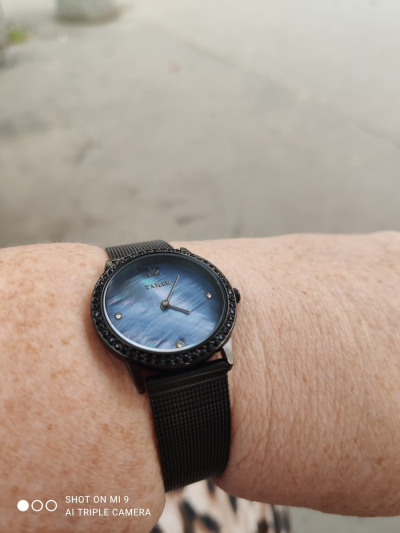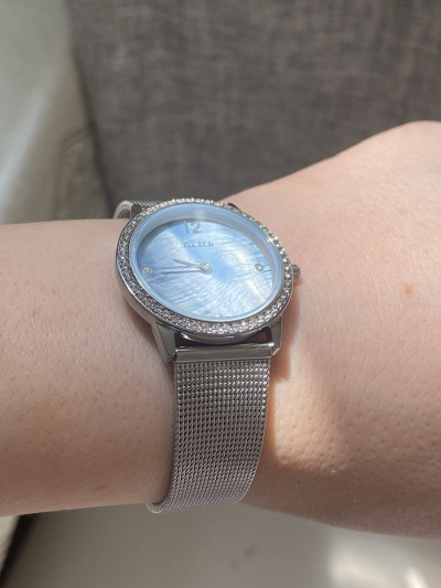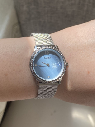 Приобрела эти часики 1.5 года назад. Очень довольна покупкой. Ходят исправно, не спешат и не отстают. При этом ещё и радуют глаз: перламутр на циферблате переливается, стразы сияют. Обожаю миланский ремешок из-за комфорта посадки и лёгкости регулировки. Единственный недочёт, что крепление ремешка к часам немного болтается, что и отличает их от более дорогих моделей.