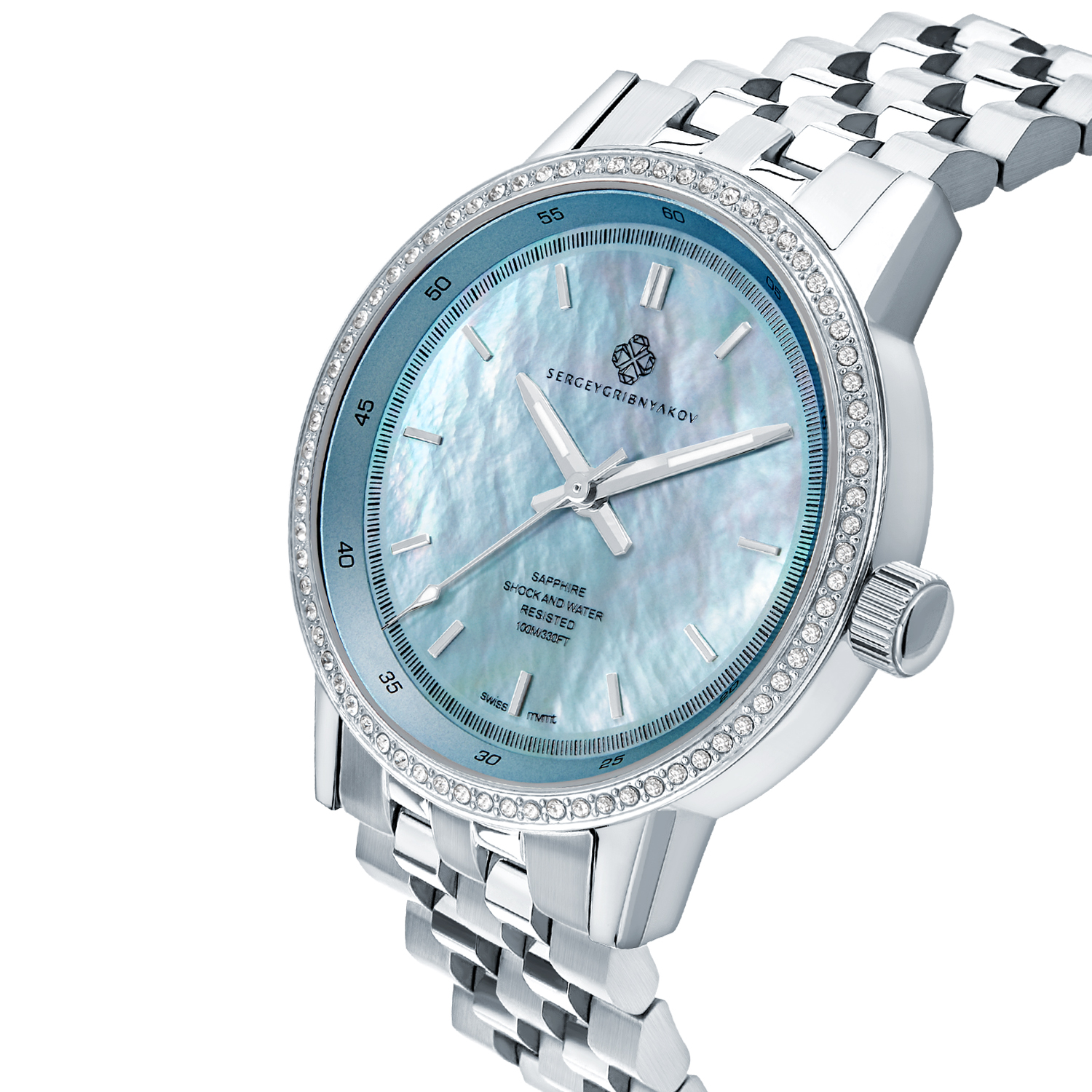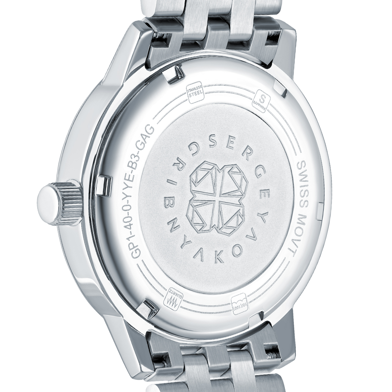 Корпус выполнен из стали 316L, сапфировое стекло с антибликом защищает циферблат от внешнего воздействия. Надежный швейцарский кварцевый механизм Ronda 763 оснащен функциями времени в 12 часовом формате и секундной стрелкой. Водозащита 10 bar (100 m/330 ft)* позволяет плавать в часах.
