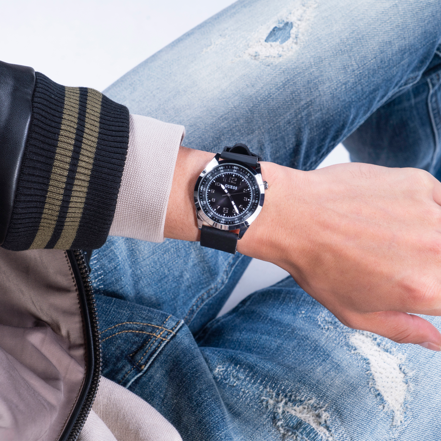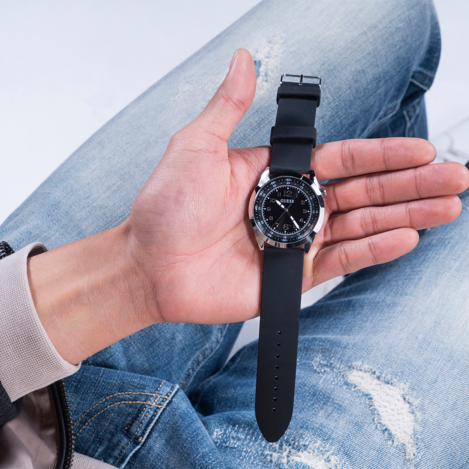Мужские наручные часы GUESS модель GW0494G1 из коллекции GUESS DRESS. Японский кварцевый механизм Y121 SEIKO (TMI) использующий элемент питания SR626SW. Стальной корпус размера 42 мм. Минеральное стекло. Силиконовый ремешок. Водостойкость 5 АТМ (мытье рук, дождь). GUESS – лидер в индустрии фешен часов по длительности присутствия на рынке и по ширине коллекции, ежегодно создает более 100 новинок. Компания GUESS Watches, основанная в 1984 году в Лос-Анджелесе (США) как пионер революции, возглавила трансформацию часов из простого инструмента для определения времени в стильный аксессуар. Бренд не боится экспериментировать. Разнообразные формы корпуса, сложно декорированные циферблаты, уникальный дизайн браслетов. GUESS – это про тренды и технологии в мире моды. Это яркие и дизайнерские часы, призванные угодить самым смелым фешн-драйверам и энтузиастам моды по всему миру. Страна-изготовитель: Филиппины. При изготовлении используются только надежные Японские механизмы. ВНИМАНИЕ! Заявленная водостойкость гарантируется только при плотно закрытой или закрученной заводной головке!