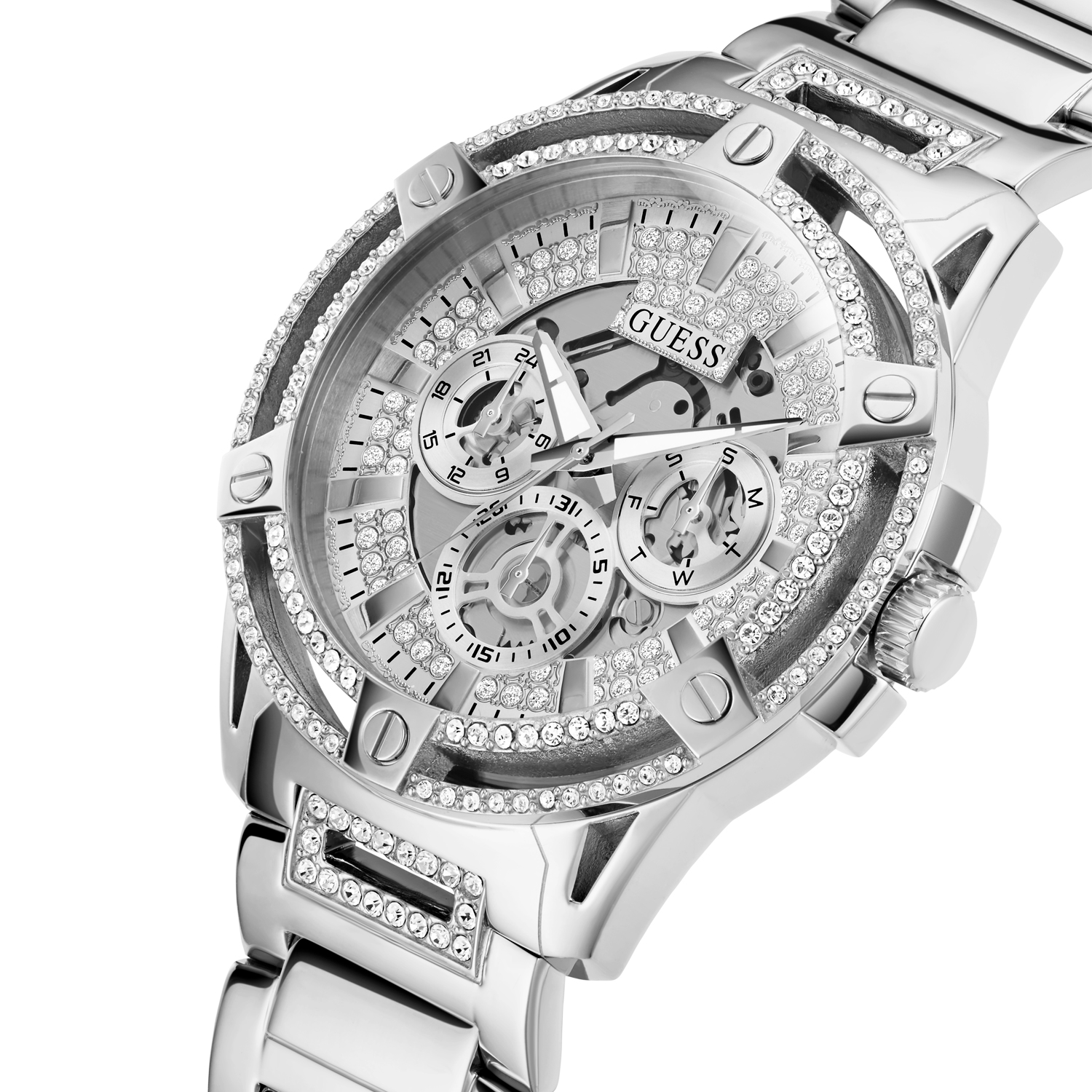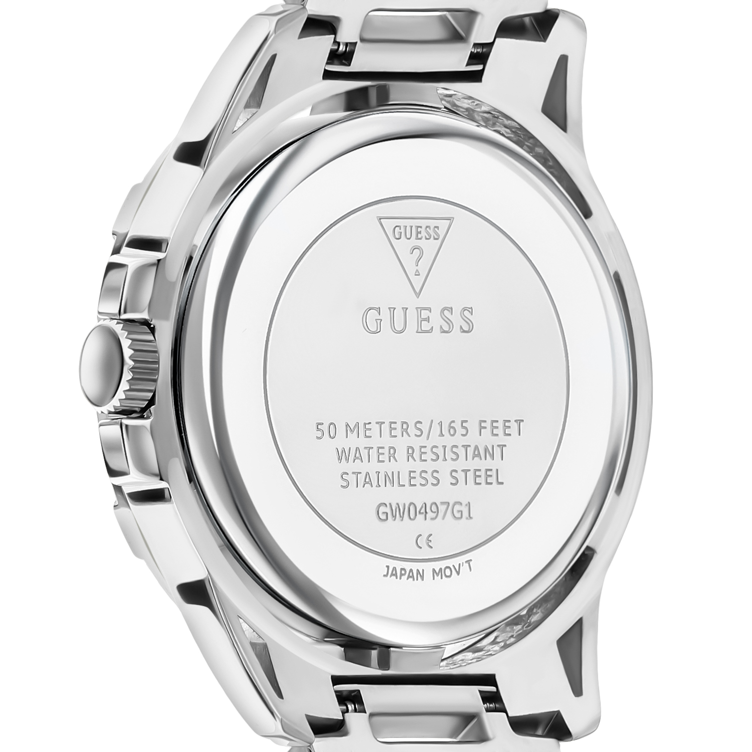 Мужские наручные часы GUESS модель GW0497G1 из коллекции GUESS TREND. Японский кварцевый мультифункциональный механизм VX7JE2 SEIKO (TMI) с вынесенными на отдельные циферблаты датой, днем недели и часовой стрелкой в режиме 24 часа использующий элемент питания SR927SW. Стальной корпус размера 48 мм. Минеральное стекло. Стальной браслет. Водостойкость 5 АТМ (мытье рук, дождь). GUESS – лидер в индустрии фешен часов по длительности присутствия на рынке и по ширине коллекции, ежегодно создает более 100 новинок. Компания GUESS Watches, основанная в 1984 году в Лос-Анджелесе (США) как пионер революции, возглавила трансформацию часов из простого инструмента для определения времени в стильный аксессуар. Бренд не боится экспериментировать. Разнообразные формы корпуса, сложно декорированные циферблаты, уникальный дизайн браслетов. GUESS – это про тренды и технологии в мире моды. Это яркие и дизайнерские часы, призванные угодить самым смелым фешн-драйверам и энтузиастам моды по всему миру. Страна-изготовитель: Филиппины. При изготовлении используются только надежные Японские механизмы. ВНИМАНИЕ! Заявленная водостойкость гарантируется только при плотно закрытой или закрученной заводной головке!