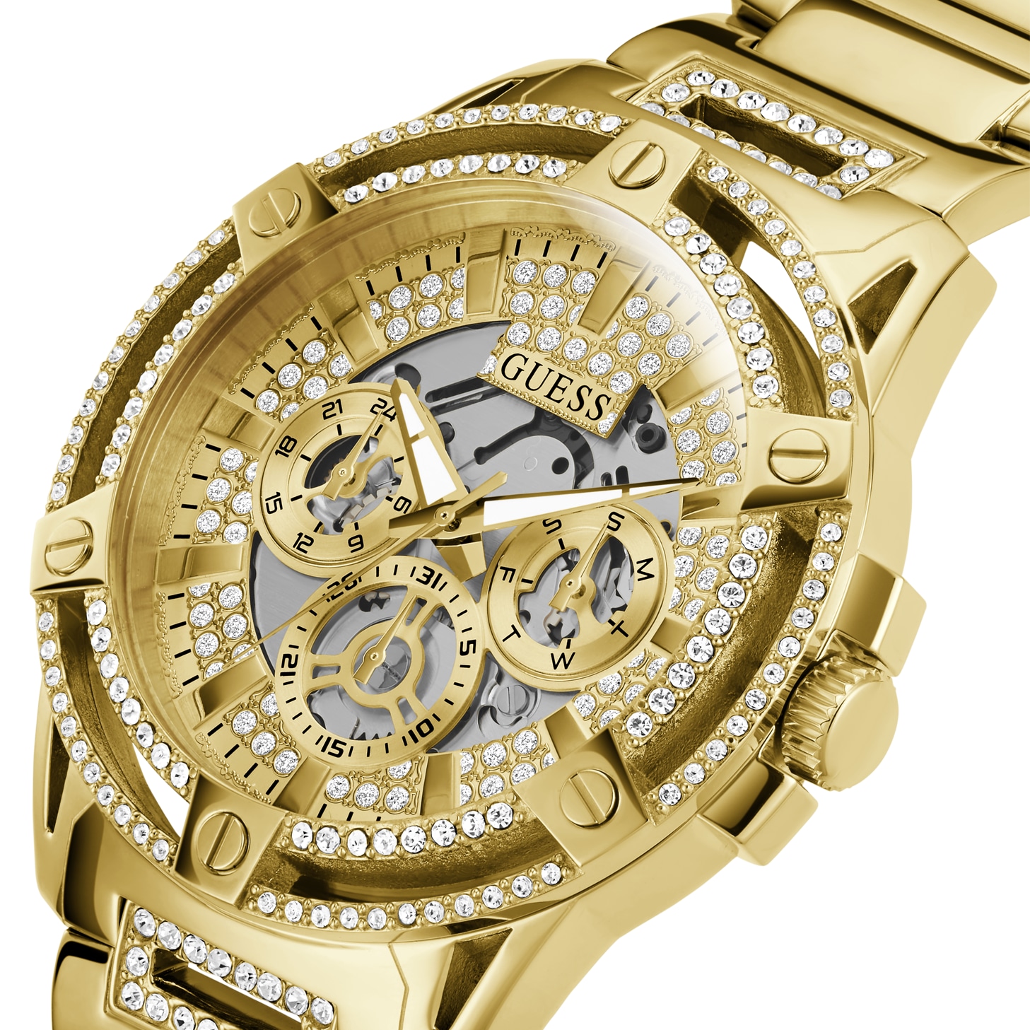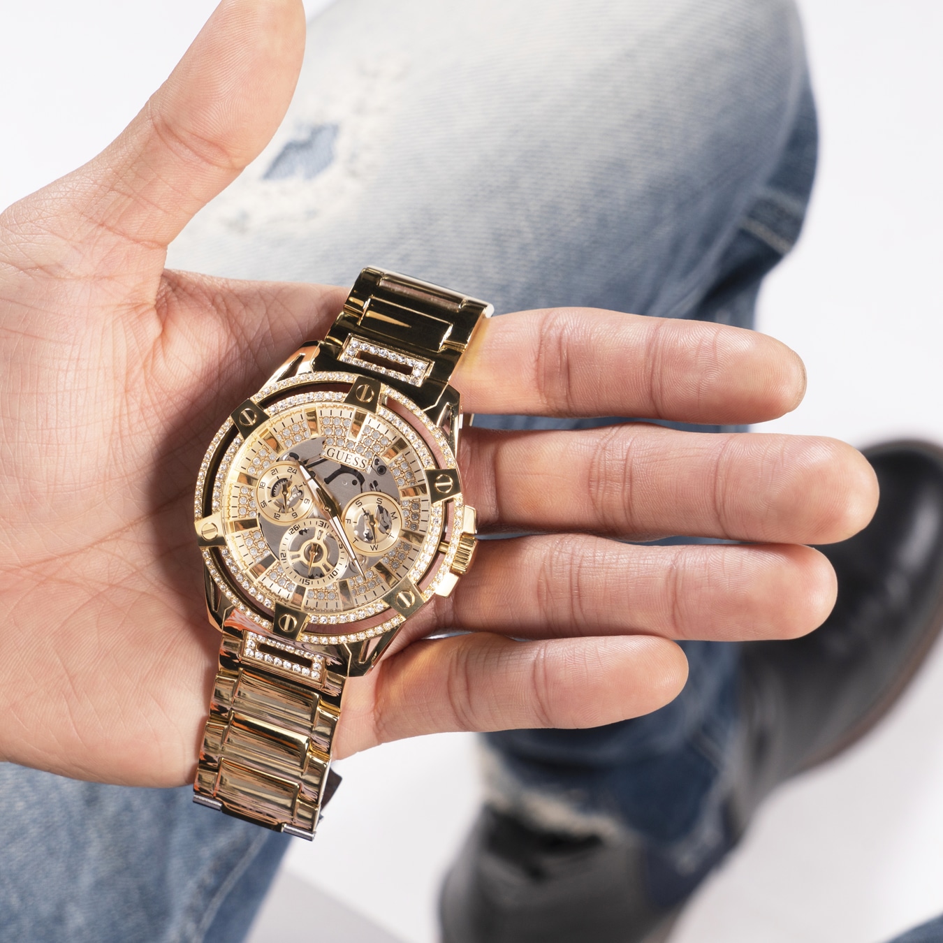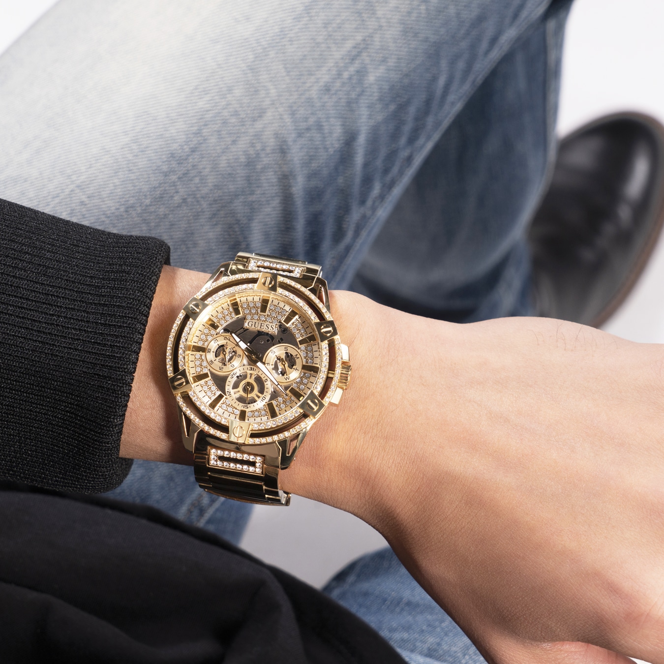 Мужские наручные часы GUESS модель GW0497G2 из коллекции GUESS TREND. Японский кварцевый мультифункциональный механизм VX7JE2 SEIKO (TMI) с вынесенными на отдельные циферблаты датой, днем недели и часовой стрелкой в режиме 24 часа использующий элемент питания SR927SW. Стальной корпус размера 48 мм. Минеральное стекло. Стальной браслет. Водостойкость 5 АТМ (мытье рук, дождь). GUESS – лидер в индустрии фешен часов по длительности присутствия на рынке и по ширине коллекции, ежегодно создает более 100 новинок. Компания GUESS Watches, основанная в 1984 году в Лос-Анджелесе (США) как пионер революции, возглавила трансформацию часов из простого инструмента для определения времени в стильный аксессуар. Бренд не боится экспериментировать. Разнообразные формы корпуса, сложно декорированные циферблаты, уникальный дизайн браслетов. GUESS – это про тренды и технологии в мире моды. Это яркие и дизайнерские часы, призванные угодить самым смелым фешн-драйверам и энтузиастам моды по всему миру. Страна-изготовитель: Филиппины. При изготовлении используются только надежные Японские механизмы. ВНИМАНИЕ! Заявленная водостойкость гарантируется только при плотно закрытой или закрученной заводной головке!