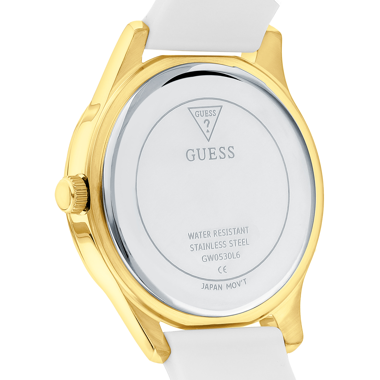 Женские наручные часы GUESS модель GW0530L6 из коллекции GUESS TREND. Японский кварцевый механизм Y121 SEIKO (TMI) использующий элемент питания SR626SW. Стальной корпус размера 38 мм. Минеральное стекло. Силиконовый ремешок. Водостойкость 3 АТМ (защита от брызг). Остерегайтесь попадания часов в воду. GUESS – лидер в индустрии фешен часов по длительности присутствия на рынке и по ширине коллекции, ежегодно создает более 100 новинок. Компания GUESS Watches, основанная в 1984 году в Лос-Анджелесе (США) как пионер революции, возглавила трансформацию часов из простого инструмента для определения времени в стильный аксессуар. Бренд не боится экспериментировать. Разнообразные формы корпуса, сложно декорированные циферблаты, уникальный дизайн браслетов. GUESS – это про тренды и технологии в мире моды. Это яркие и дизайнерские часы, призванные угодить самым смелым фешн-драйверам и энтузиастам моды по всему миру. Страна-изготовитель: Филиппины. При изготовлении используются только надежные Японские механизмы. ВНИМАНИЕ! Заявленная водостойкость гарантируется только при плотно закрытой или закрученной заводной головке!