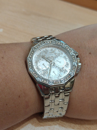 Очень красивые часы, много страз, то что я люблю. Настроила легко по инструкции , нужно укоротить звенья.