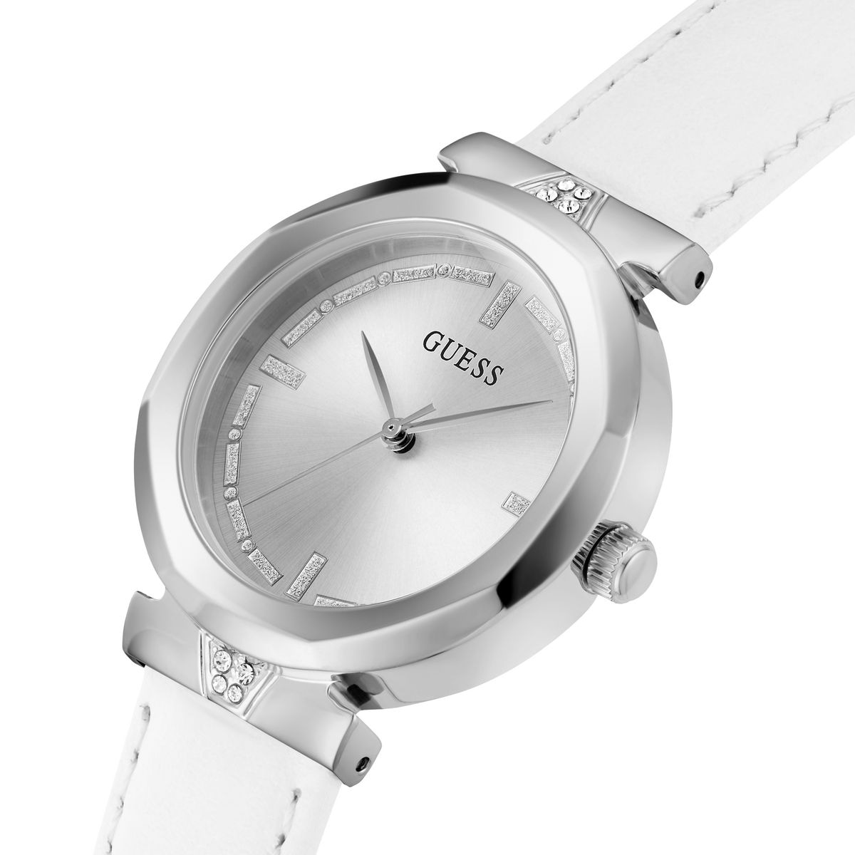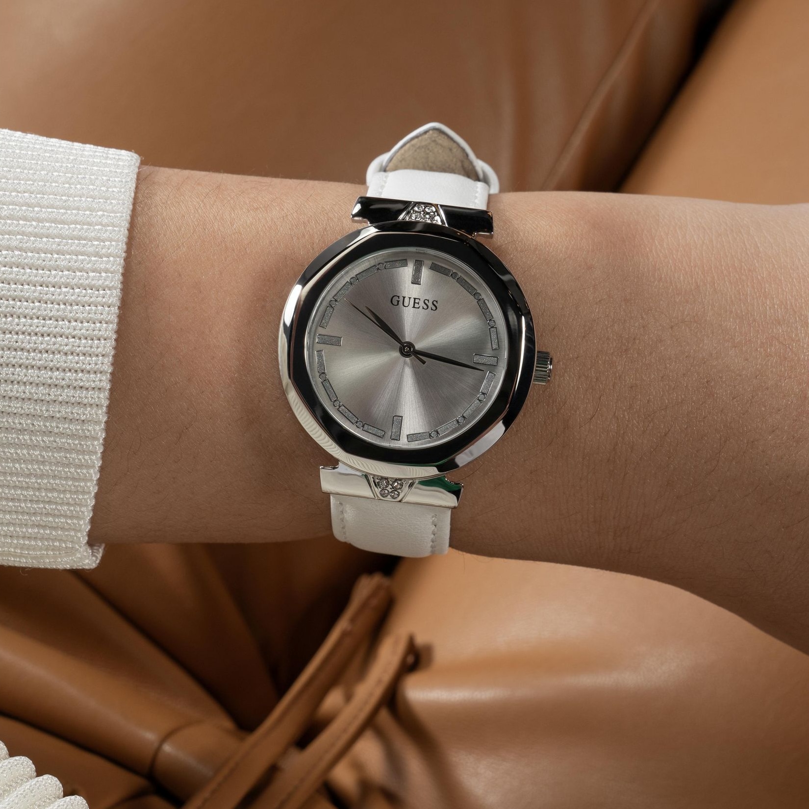 Женские наручные часы GUESS модель GW0689L1 из коллекции GUESS DRESS. Японский кварцевый механизм Y121 SEIKO (TMI) использующий элемент питания SR626SW. Стальной корпус размера 34 мм. Минеральное стекло. Ремешок из натуральной кожи. Водостойкость 3 АТМ (защита от брызг). Остерегайтесь попадания часов в воду. GUESS – лидер в индустрии фешен часов по длительности присутствия на рынке и по ширине коллекции, ежегодно создает более 100 новинок. Компания GUESS Watches, основанная в 1984 году в Лос-Анджелесе (США) как пионер революции, возглавила трансформацию часов из простого инструмента для определения времени в стильный аксессуар. Бренд не боится экспериментировать. Разнообразные формы корпуса, сложно декорированные циферблаты, уникальный дизайн браслетов. GUESS – это про тренды и технологии в мире моды. Это яркие и дизайнерские часы, призванные угодить самым смелым фешн-драйверам и энтузиастам моды по всему миру. Страна-изготовитель: Филиппины. При изготовлении используются только надежные Японские механизмы. ВНИМАНИЕ! Заявленная водостойкость гарантируется только при плотно закрытой или закрученной заводной головке!
