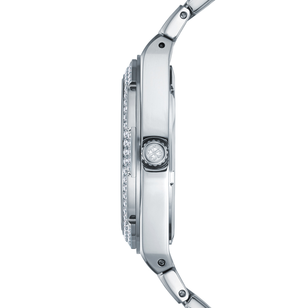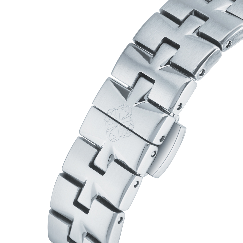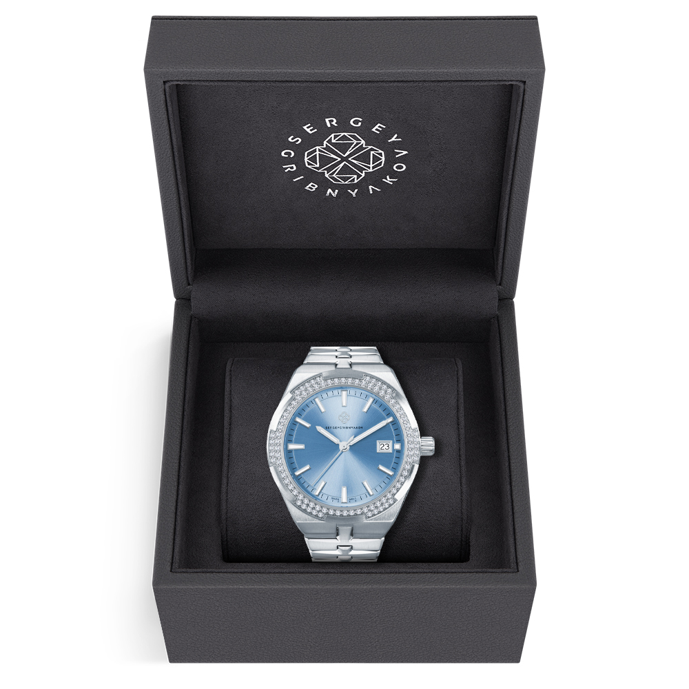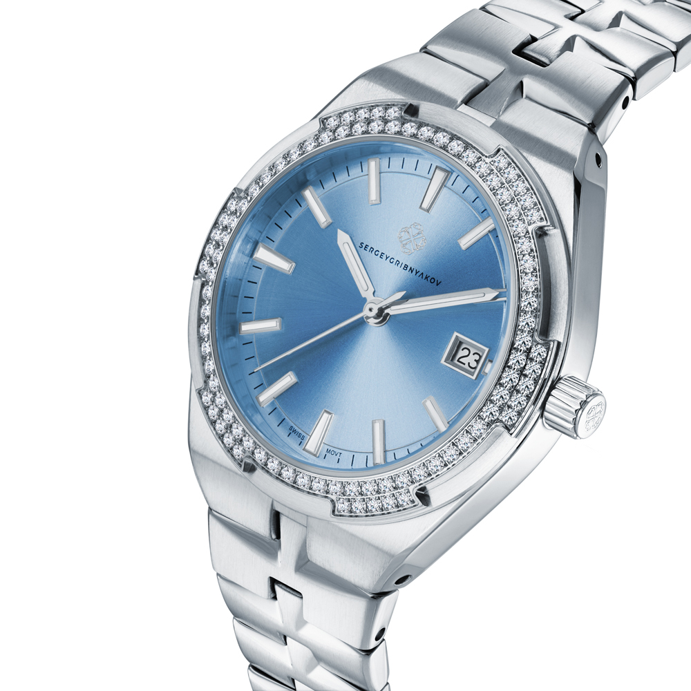 Элегантные часы из коллекции Platinum. Сочетают в себе женственность, изящество и спортивный стиль. Отличительная черта данной модели - наличие безеля с шестью выступами из нержавеющей стали, украшенный ювелирными кристаллами. В миниатюрный корпус диаметром 35 миллиметра установлен кварцевый механизм, обеспечивающий индикацию часов, минут, секунд и даты в окошке у отметки «3 часа». Корпус выполнен из стали 316L, сапфировое стекло с антибликом защищает циферблат от внешнего воздействия. Надежный швейцарский кварцевый механизм Ronda 505 оснащен функциями даты и времени в 12 часовом формате, голубой циферблат с эффектом sunray, 12-часовая разметка с люминесцентным эффектом. Стрелки имеют алмазную обработку. Водозащита 10 bar (100 m/330 ft)* позволяет плавать в часах.