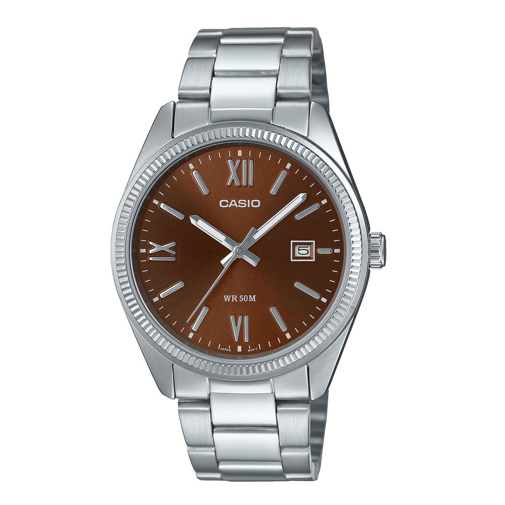 Мужские наручные часы CASIO модель MTP-1302DD-5A из коллекции CASIO Collection. Японский кварцевый механизм MIYOTA с центральной секундной стрелкой и окошком даты, использующий элемент питания SR626SW. Стальной корпус размера 38*44 мм. Минеральное стекло. Стальной браслет. Водостойкость 5 АТМ (мытье рук, дождь). Casio Computer Co., Ltd. — японский концерн известный как производитель калькуляторов, аудиооборудования, КПК, фотокамер, музыкальных инструментов, планшетов и наручных часов. Основное представительство компании находится в Токио (Япония). Производственные площадки находятся в нескольких странах юго-восточной азии (Японии, Китае, Корее, Въетнаме, Малайзии). Используются механизмы дочерней компании MIYOTA с техническими доработками и усложнениями. ВНИМАНИЕ! Заявленная водостойкость гарантируется только при плотно закрытой или закрученной заводной головке!