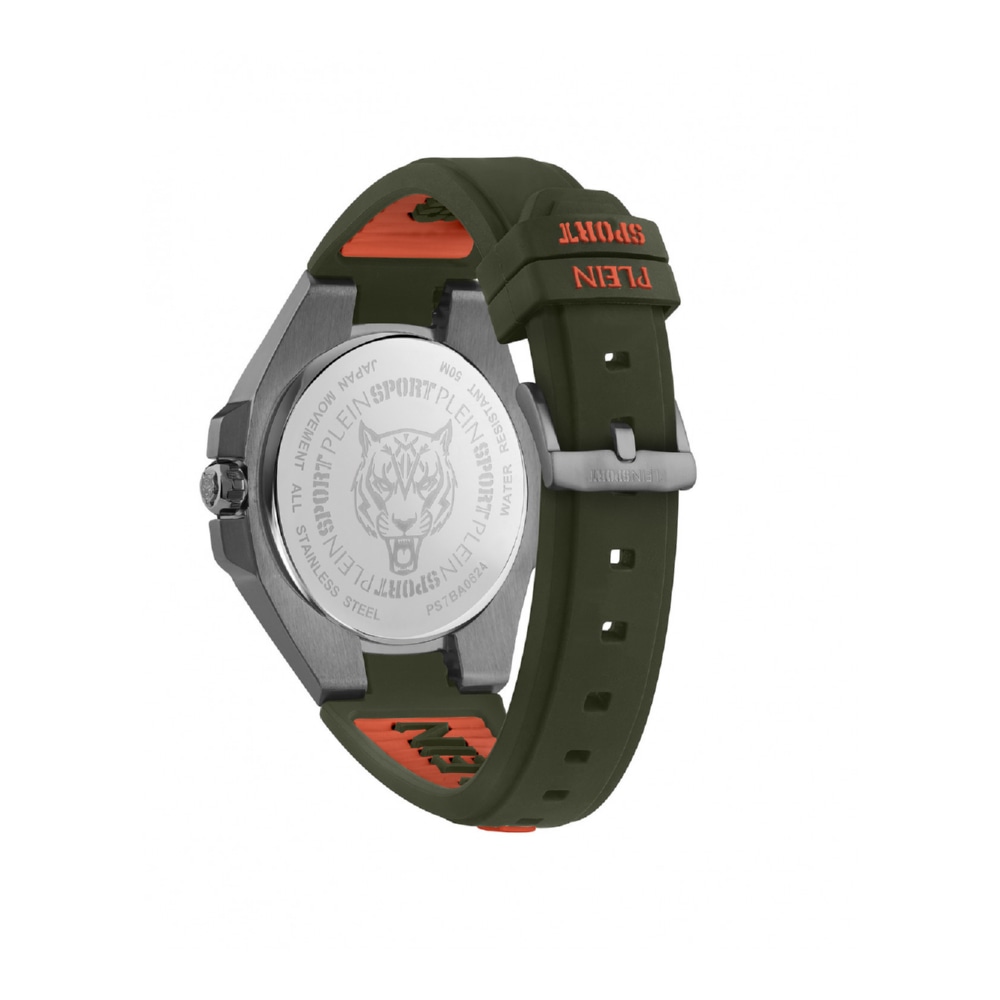 Мужские наручные часы PLEIN SPORT модель PS7BA0624 из коллекции TIGERMASTER. Дерзкий и ультрамодный дизайн с изображением тигра и украшенный объемным паттерном «след когтей». Стальной корпус размера 47 мм. Минеральное стекло. Силиконовый ремешок с классической застежкой пряжкой. Водостойкость 5 АТМ (мытье рук, дождь). PLEIN SPORT — это ультрасовременный бренд спортивной одежды, который предлагает в своей продукции инновационный дизайн, передовые и технологичные решения, объединяющие в единое целое спорт и моду.