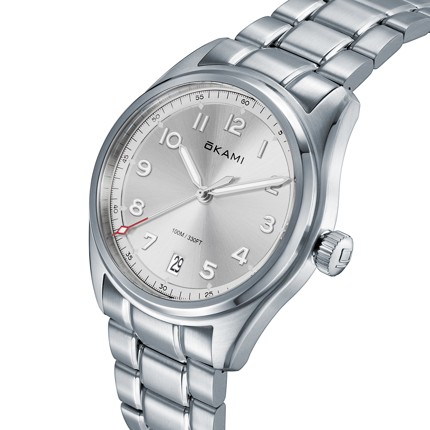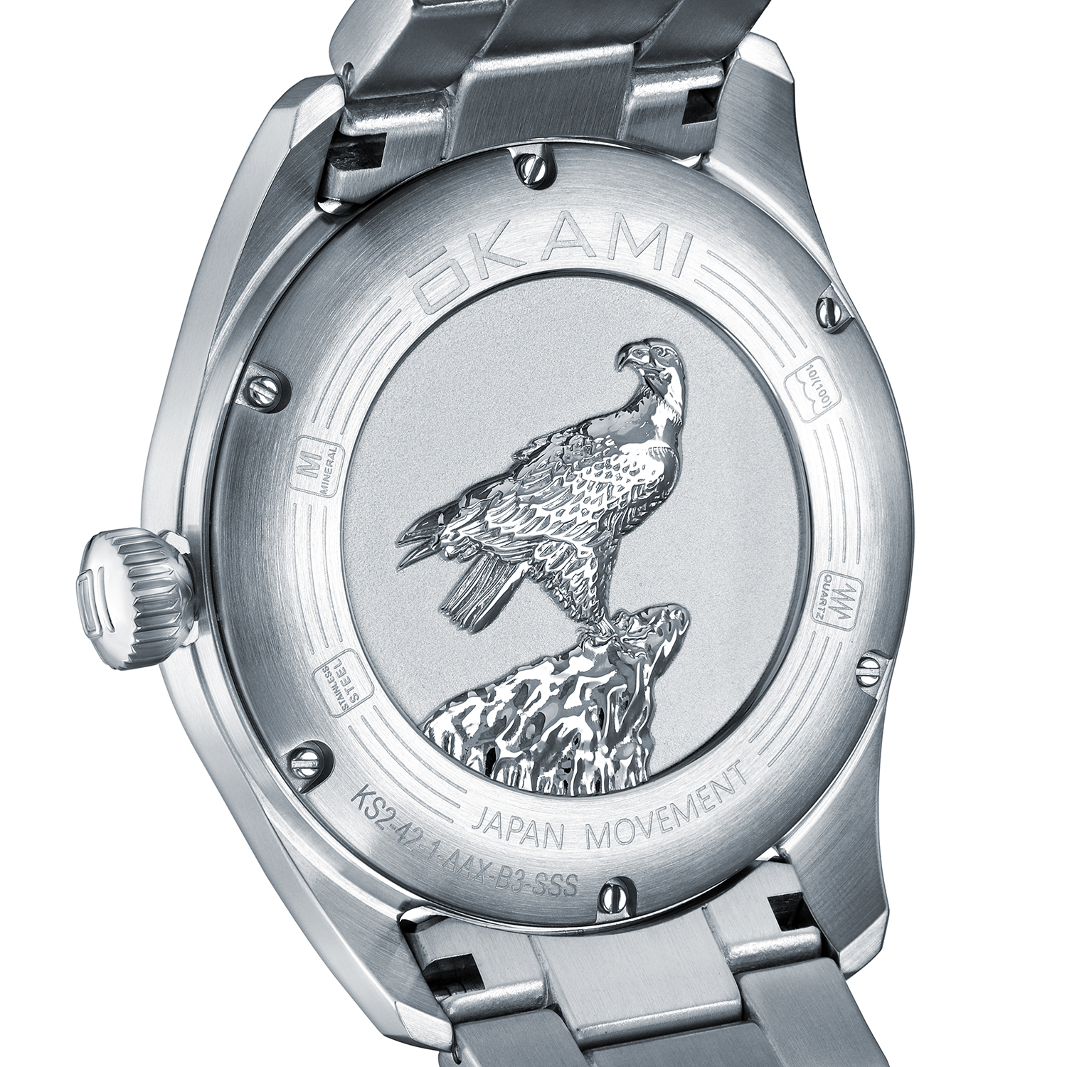 Наручные кварцевые мужские часы марки OKAMI артикул KS2-42-1-AAX-B3-SSS. Корпус из нержавеющей стали размера 42 мм. Минеральное стекло. Браслет из гипоаллергенной нержавеющей стали. Водозащита 10 bar (100 m/330 ft) делает часы устойчивыми к попаданиям в воду. *Давление выраженное в атмосферах и метрах не должно рассматриваться как эквивалент глубине погружения в воду. Герметичность часов обеспечена специальными уплотнителями на задней крышке, кнопках и переводной коронке. Герметичность сохраняется в закрытом положении всех элементов. Не подвергайте часы нагреву, так как он способен привести к деформации уплотнителей.