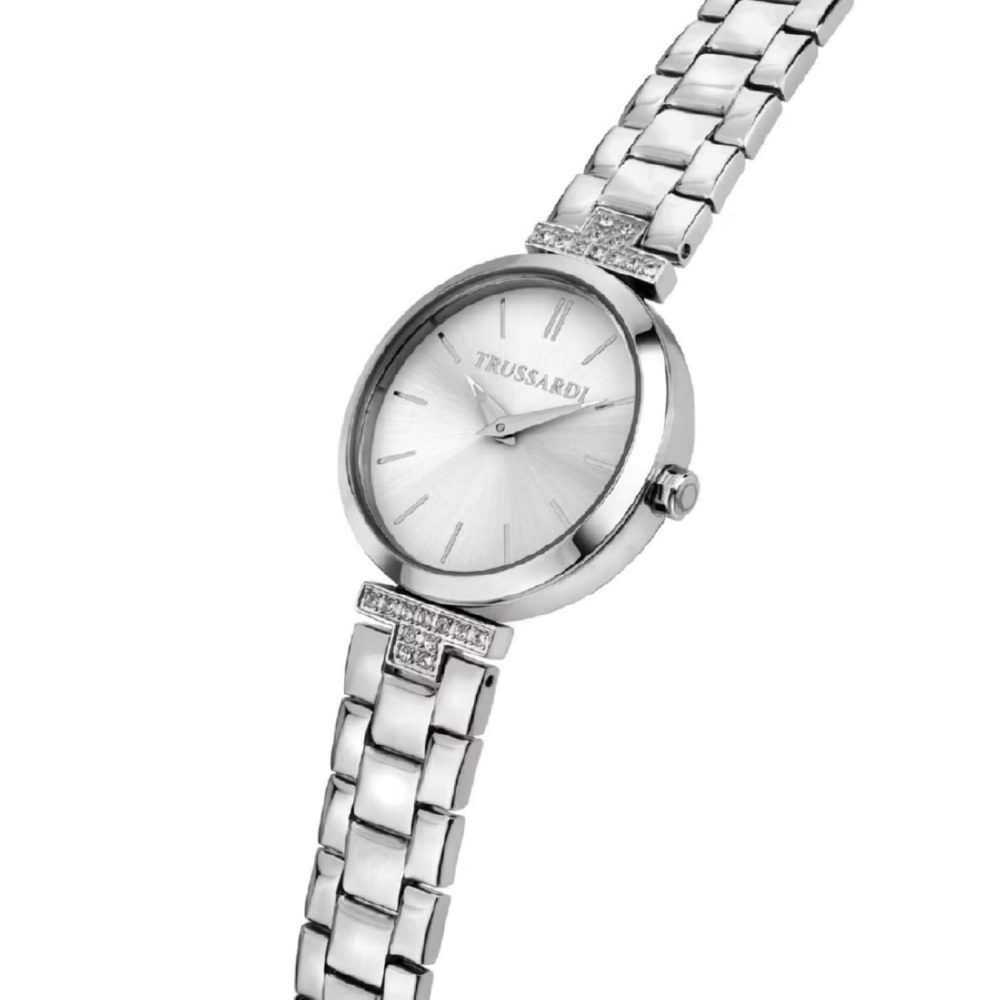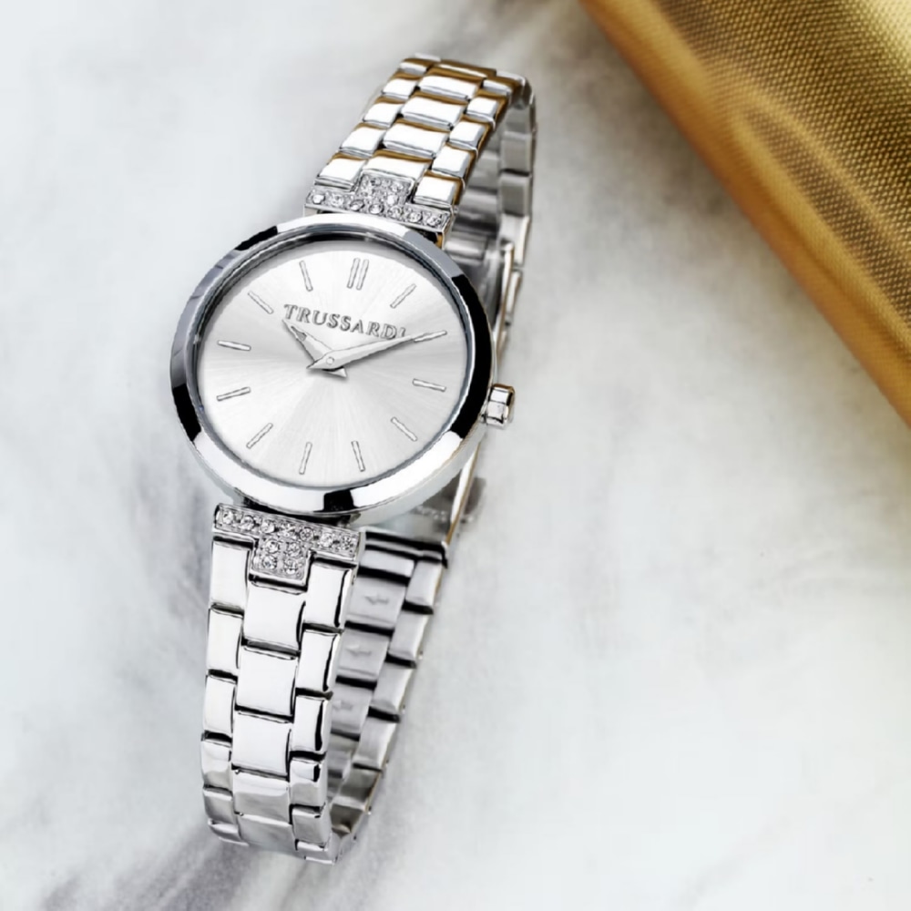 Часы легендарного итальянского дома Trussardi находятся на вершине мировых модных брендов, источая космополитичный дух и современный стиль. Новинка сезона осень-зима 2024/2025 года. Женская модель R2453164501 из коллекции Loud. Круглый стальной корпус размером 30 мм с интегрированным браслетом. Минеральное стекло устойчиво к мелким царапинам. Водостойкость 5 АТМ (мытье рук, дождь). Страна производства - Италия. В комплект входит фирменная упаковка, гарантийный талон и инструкция на русском языке. Приобретая этот товар, Вы покупаете изделие от эксклюзивного дистрибьютора марки на территории РФ.