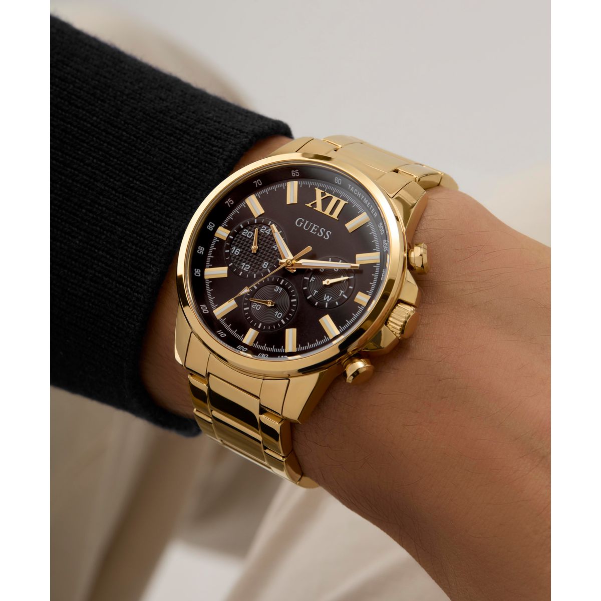 Новинка из коллекции GUESS зима-весна 2025! Мужская кварцевая мультифункциональная модель GW0900G3. Стальной корпус диаметром 44 мм c PVD покрытием. Метки в виде римских цифр и индексов. Время в 24-х часовом формате, дата и день недели вынесены на отдельные циферблаты. Рифленая заводная головка. Минеральное стекло. Раскладывающаяся застежка с кнопками с двух сторон. Штаб-квартира компании GUESS расположена в Лос-Анджелес США. Часы марки производятся на дву заводах компании, расположенных в Китае и на Филиппинах. У нас представлены модели выпущенные на Филиппинском заводе. В моделях используются надежные японские механизмы Miyota и Seiko.