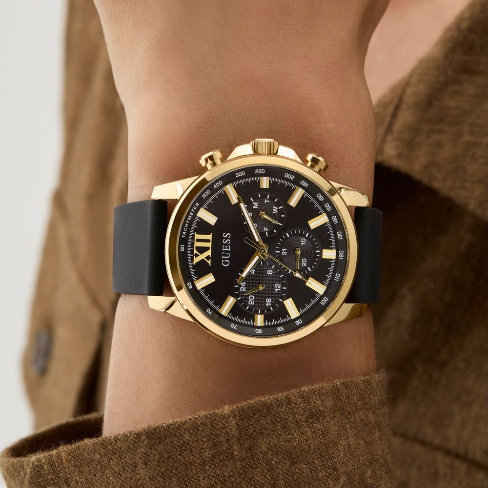 Новинка из коллекции GUESS зима-весна 2025! Мужская кварцевая мультифункциональная модель GW0913G2. Японский кварцевый механизм VX9JE1S SEIKO (TMI) использующий элемент питания SR927SW. Стальной корпус диаметром 44 мм и толщиной 11 мм c PVD покрытием. Метки в виде римских цифр и индексов. Время в 24-х часовом формате, дата и день недели вынесены на отдельные циферблаты. Рифленая заводная головка. Минеральное стекло. Водостойкость 5 АТМ (мытье рук, дождь). Силиконовый ремешок с застежкой пряжкой. Штаб-квартира компании GUESS расположена в Лос-Анджелес США. Часы марки производятся на двух заводах компании, расположенных в Китае и на Филиппинах. У нас представлены модели выпущенные на Филиппинском заводе. В моделях используются надежные японские механизмы Miyota и Seiko.