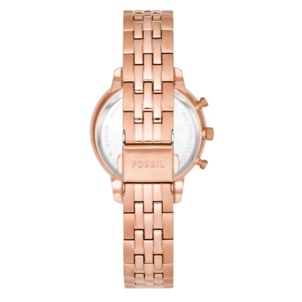 Наручные кварцевые женщинам часы марки FOSSIL артикул ES5218. Стальной корпус размера 36 мм и толщиной 11 мм. Кроме стандартных в модели добавлена функция секундомера (хронограф) и часовая стрелка в режиме 24 часа. Минеральное стекло. Стальной браслет. Водостойкость 5 АТМ (мытье рук, дождь). Fossil Group, Inc. – огромная транснациональная корпорация с миллиардными оборотами. В группу входит целый ряд компаний, начиная с Fossil как таковой; большая номенклатура продукции выпускается также по лицензиям брендов с громкими именами: это не только часы, но и ювелирные украшения, очки, изделия из кожи, сумки, одежда. ВНИМАНИЕ! Заявленная водостойкость гарантируется только при плотно закрытой или закрученной заводной головке!