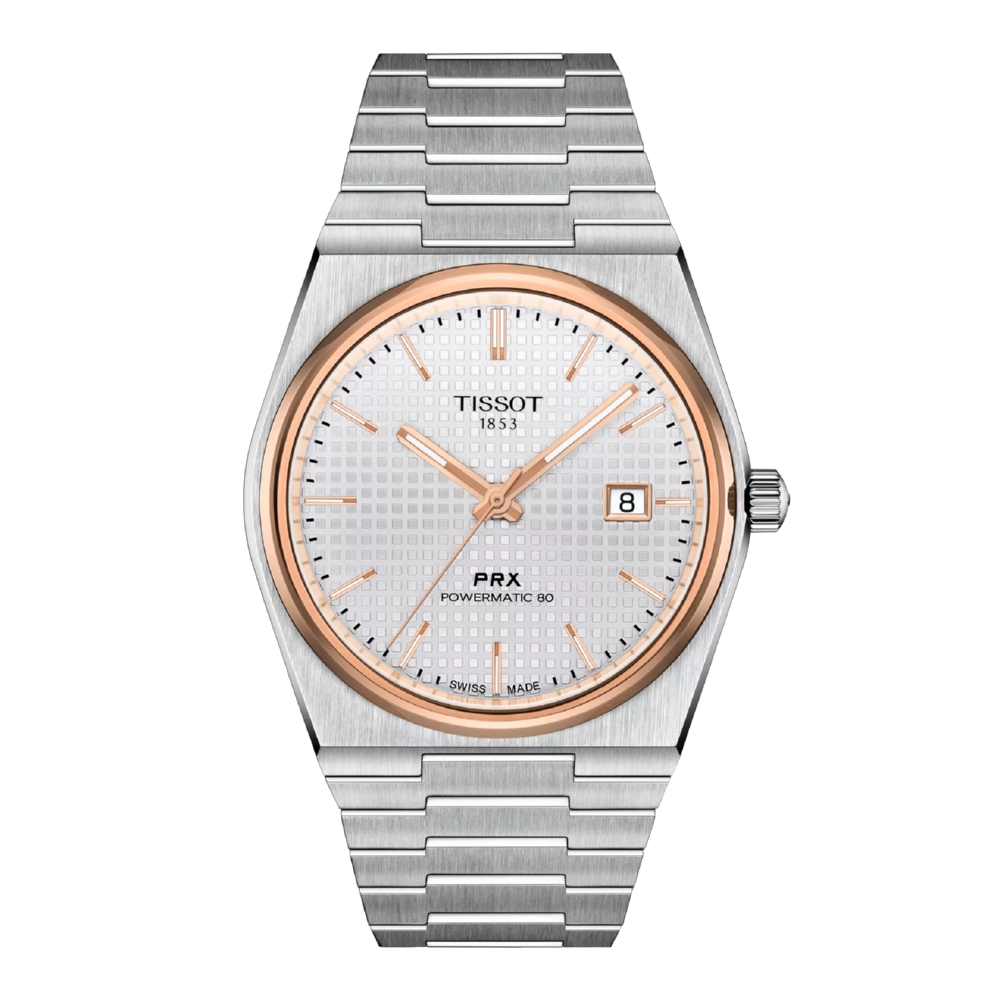 Оригинальные наручные часы Швейцарского бренда TISSOT мужские механические из коллекции PRX. Артикул T1374072103100 альтернативный T137.407.21.031.00. Стальной корпус с PVD покрытием диаметром 40 мм. толщиной корпуса 10,93 мм. Сапфировое стекло, устойчивое к царапинам, с антибликовым покрытием. Швейцарский автоматический механизм Powermatic 80. Запас хода до 80 часов. Запатентованная балансировочная пружина Nivachron. Водонепроницаемость до давления 10 bar (100 m/330 ft). Допускается попадание часов в воду. Запрещены погружения и нажатия кнопок в воде. Стальной браслет с креплением 12 мм. Застежка-бабочка с кнопками, сменный быстросъемный браслет. Tissot PRX – гармоничное сочетание ностальгического гламура и современной изобретательности. Вафельный узор циферблата придаёт этим часам ещё большую индивидуальность. Сатинированный стальной браслет с трёхклинковой раскладывающейся стальной застёжкой гарантирует непревзойдённый комфорт. ВНИМАНИЕ! Заявленная водостойкость гарантируется только при плотно закрытой или закрученной заводной головке!