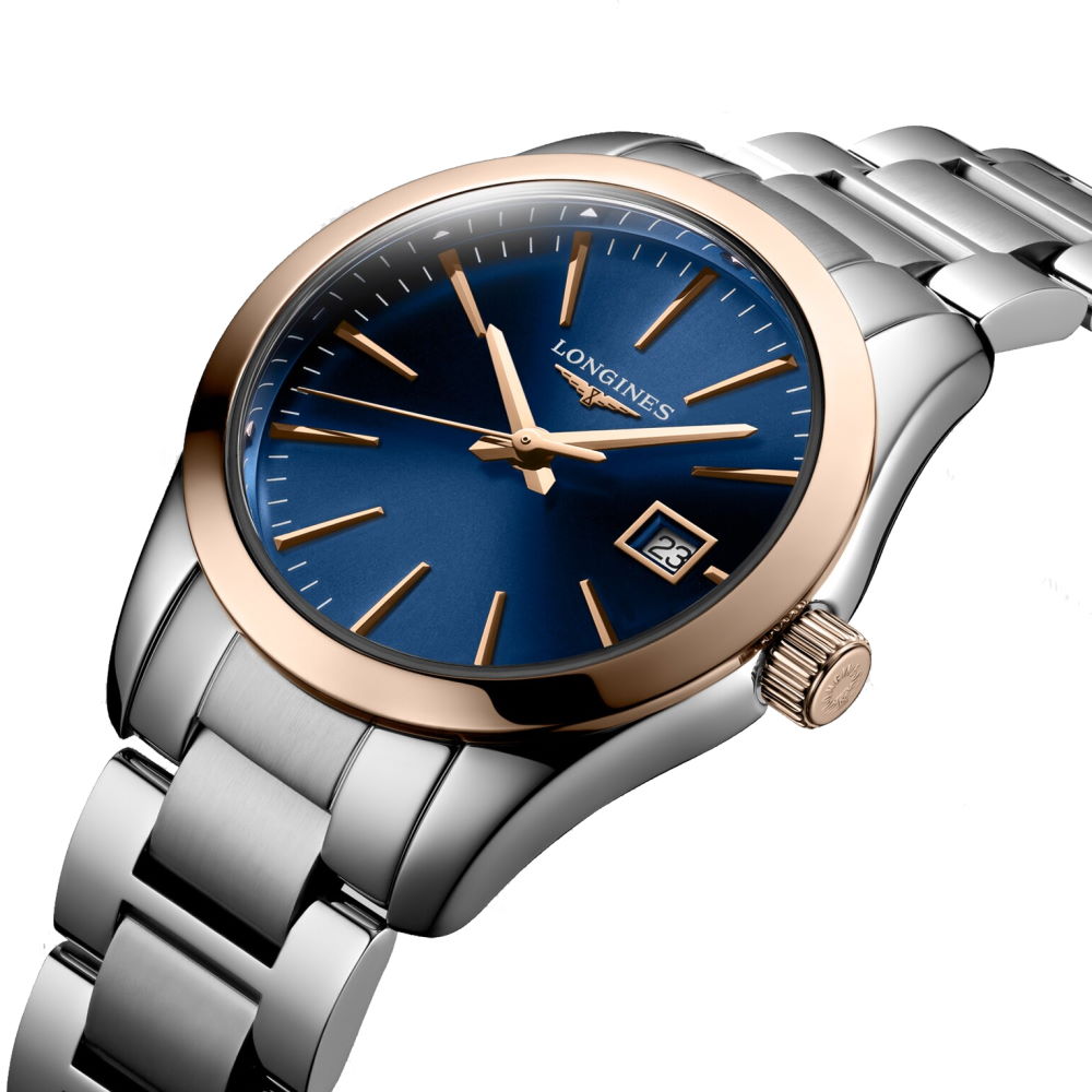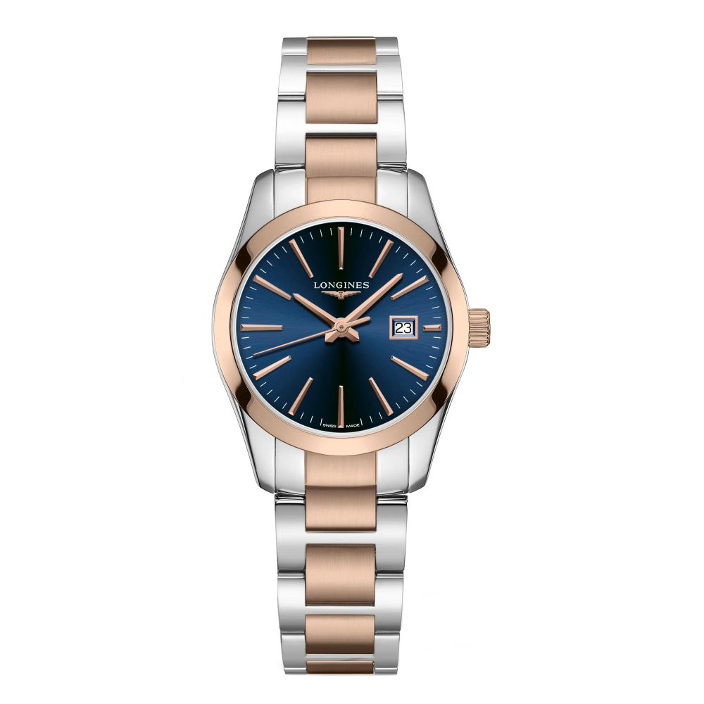 Женская модель часов из коллекции CONQUEST CLASSIC 2019 L22863927 с водозащитой 5 bar (50 m/165 ft). Диаметр корпуса 29,5 мм, толщина 8,7 мм. Вес 75 г. Корпус круглой формы, задняя крышка-хлопушка и браслет шириной 15 мм выполнены из нержавеющей стали с PVD- покрытием. Элемент питания RENATA 364. Часовой механизм LONGINES L152. Устойчивое к царапинам сапфировое стекло с многослойным антибликовым покрытием изнутри. Данная модель оснащена функциями отображения часов, минут, секунд и даты, а также функцией индексации заряда батареи E.O.L. Часы выполнены в элегантном серебристом корпусе с контрастным безелем . Цвет браслетасеребристый с вставками розового золота. Цвет циферблата синий. Остерегайтесь попадания часов в воду. ВНИМАНИЕ! Заявленная водостойкость гарантируется только при плотно закрытой или закрученной заводной головке! Швейцарская точность и надёжность, проверенные временем, с международной гарантией от производителя 24 месяца.