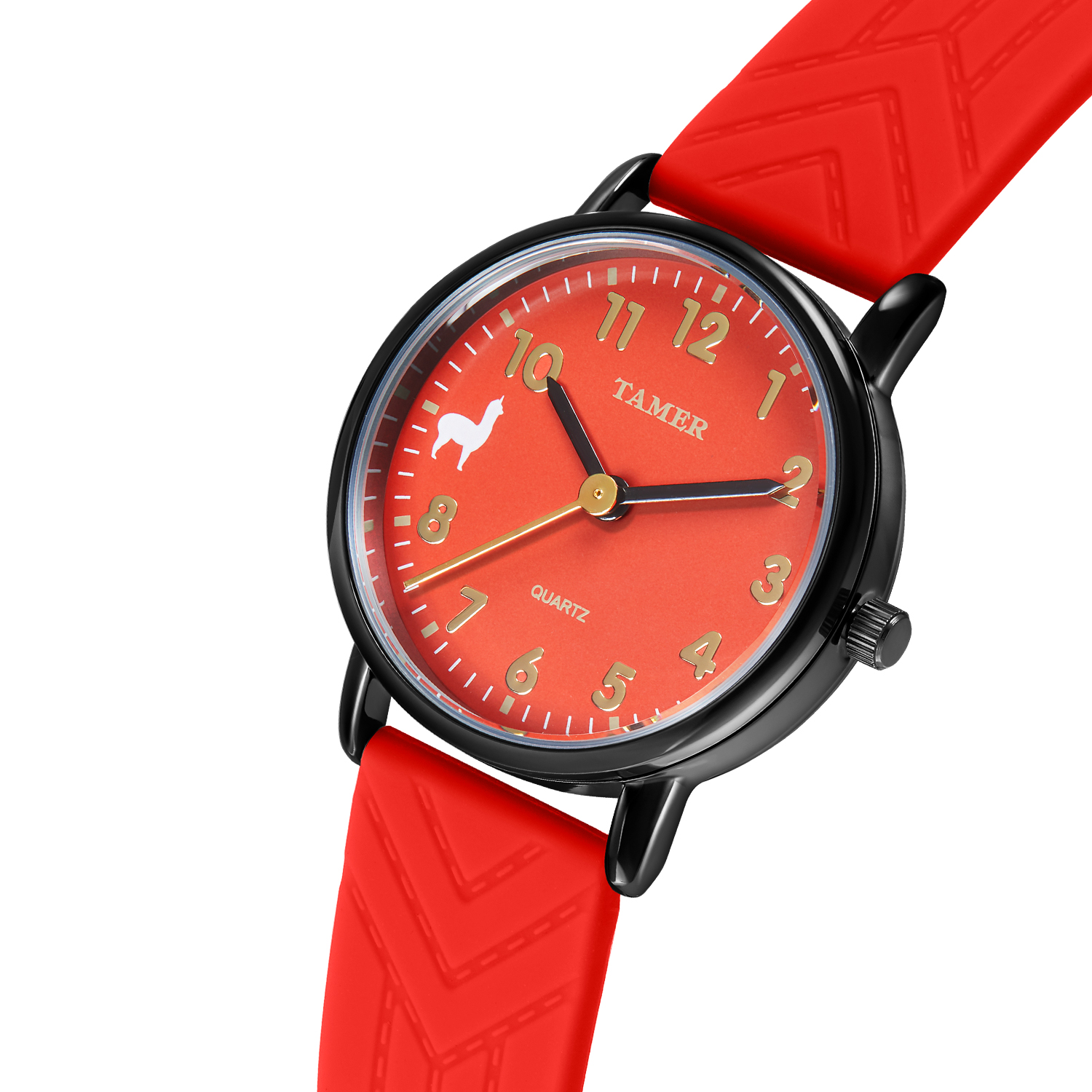 Очень красивые..ползала по ветрине и наткнулась на них..и не смогла отказаться..выглядят как взрослые..Очень креативные ..ярко красные с золотым циферблатом который блестит как золото настоящее..этим и взрослит модель..