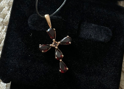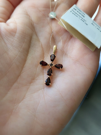 Золотой крест-подвеска с гранатами природными